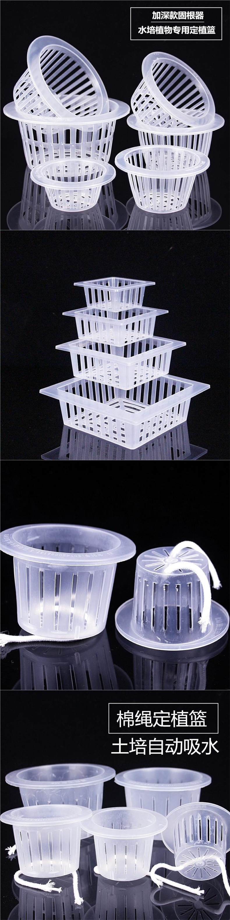 水耕栽培PP植栽バスケット、根固め、無土栽培、水耕栽培用深型植栽カップ、花用大型植栽バスケット