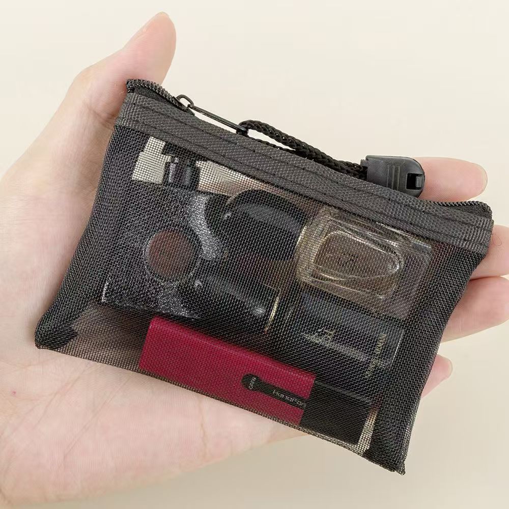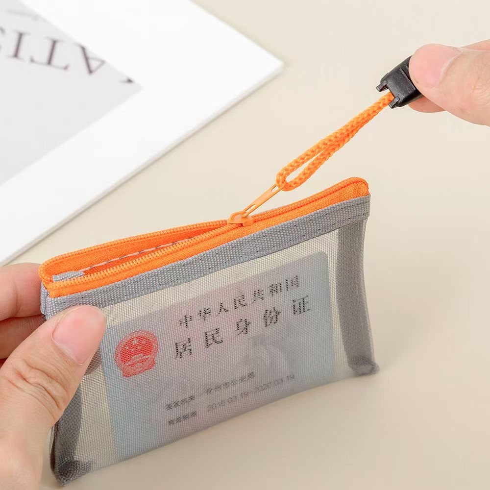 透明尼龙网格卡片收纳小包拉链袋收纳硬币零钱身份证银行卡收纳袋