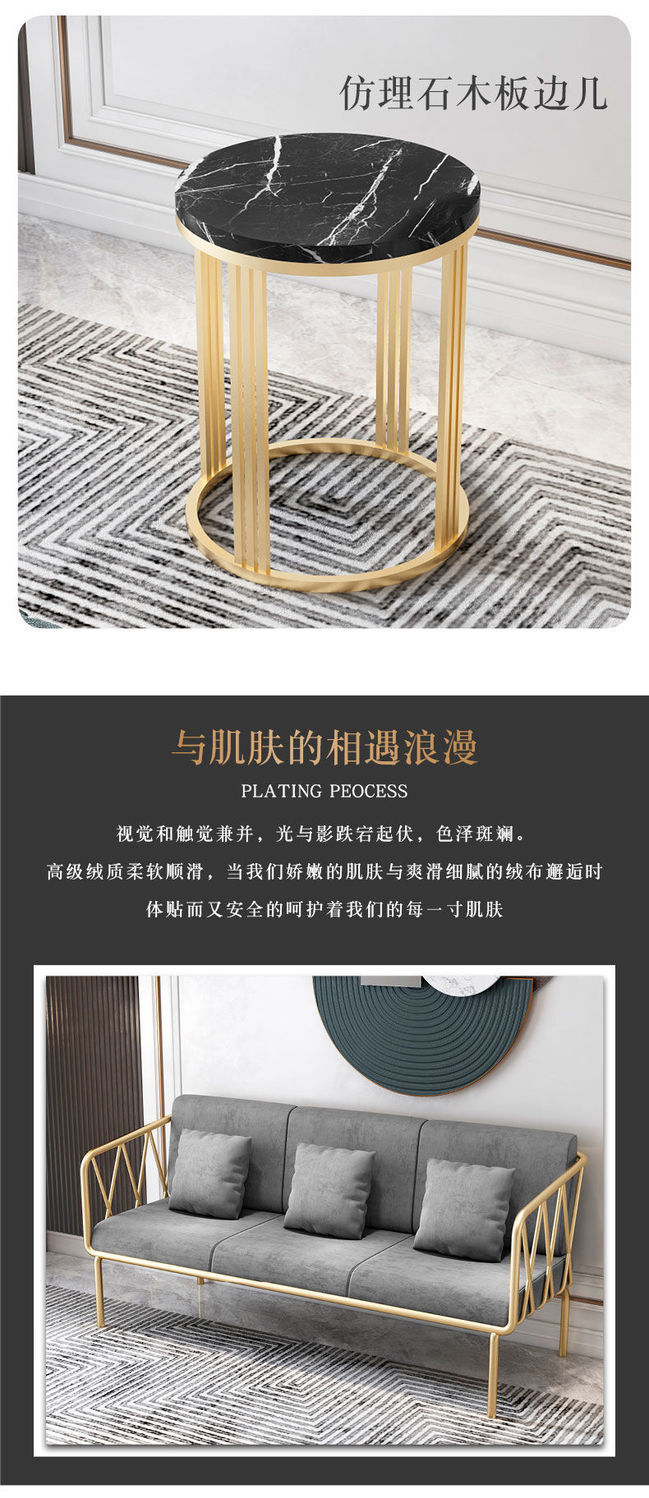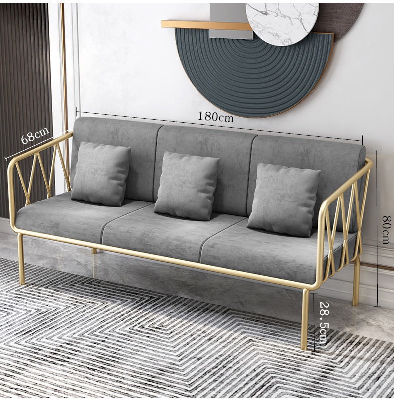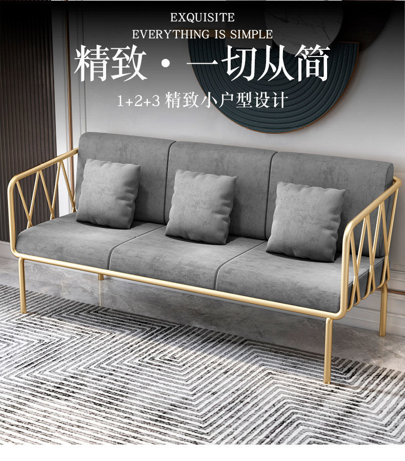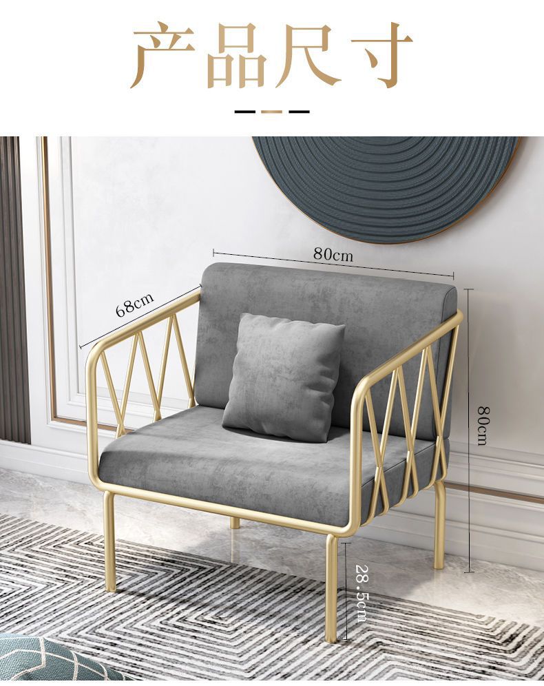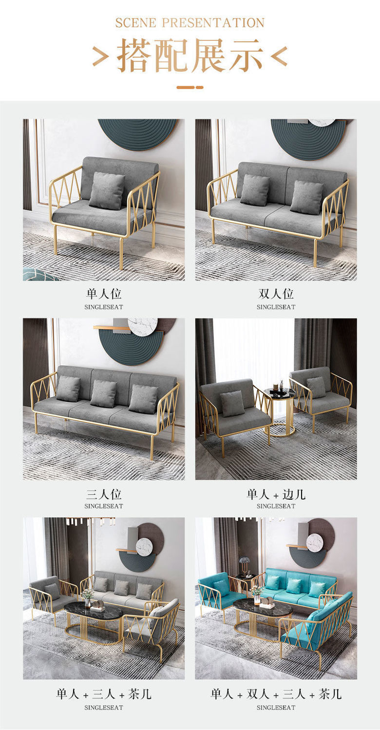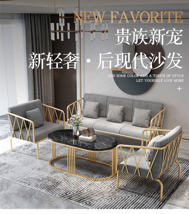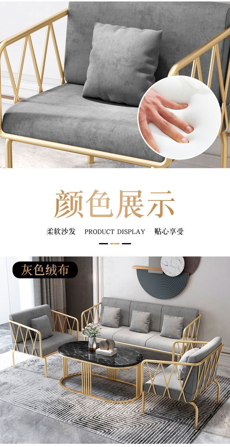 モダンでシンプルなライト高級ゴールデンアイアンソファ衣料品店ネットセレブシングルソファチェアリビングルームソファコーヒーテーブル組み合わせ