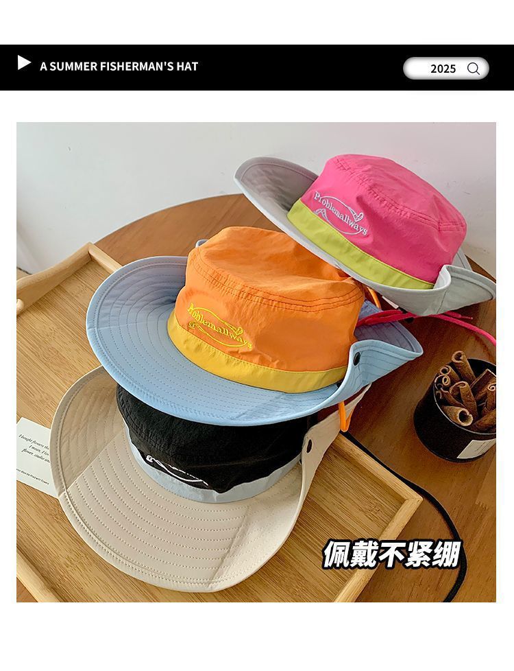 2025新款复古工装多巴胺拼色大檐渔夫帽子女春夏季户外防晒登山帽