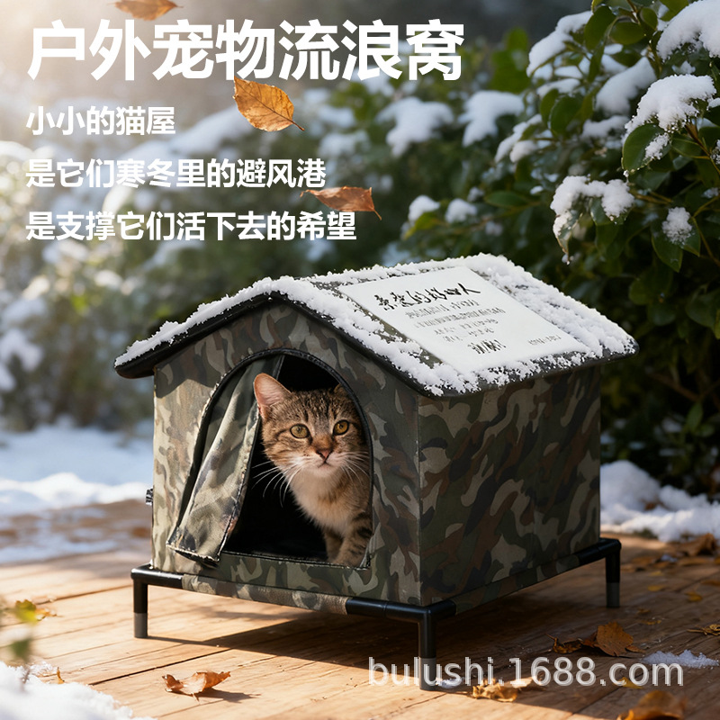 冬季保暖爱心流浪猫窝防水防雨抗寒大空间封闭式帐篷四季通用耐咬