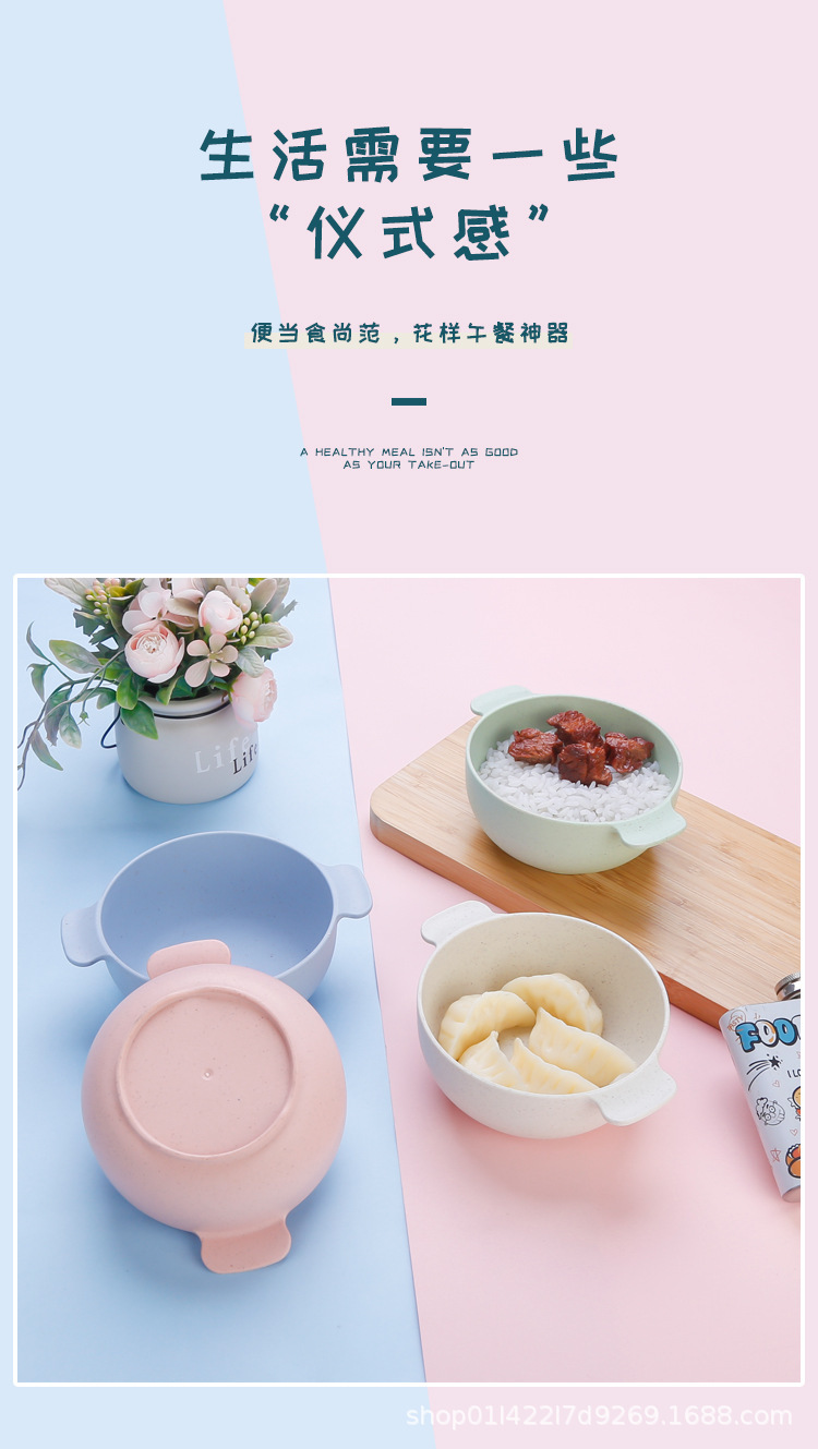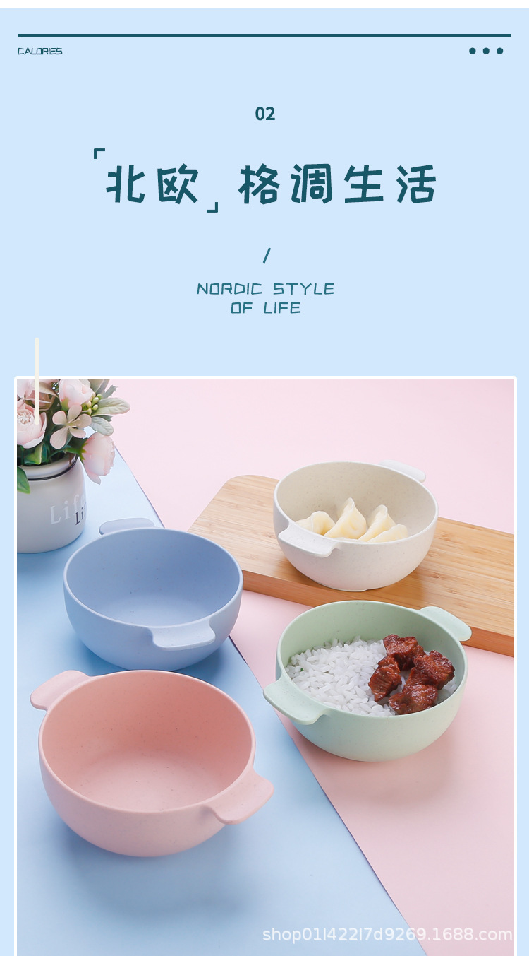 小麦秸秆碗儿童宝宝饭碗汤碗防烫双耳碗学生宿舍泡面碗燕麦碗批发