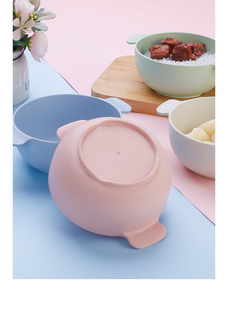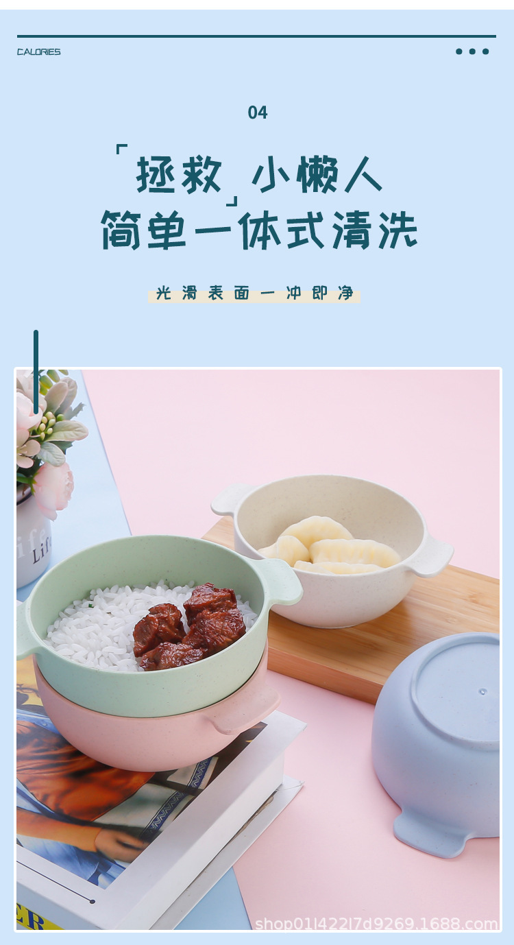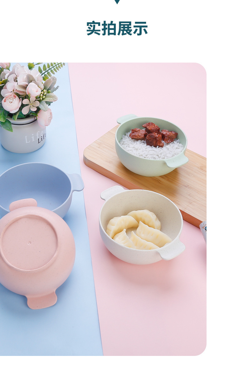 国境を越えたアマゾン小麦わら食器シンプル家庭用断熱児童ボウル食事ボウル果物プラスチック双耳ボウル