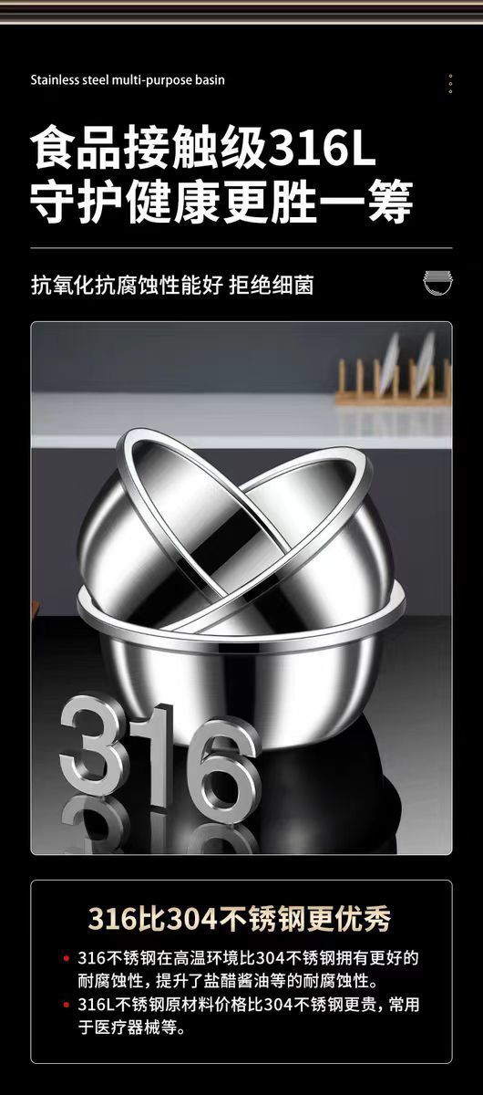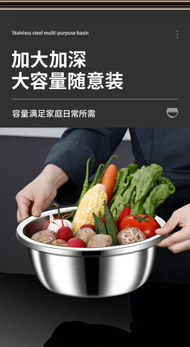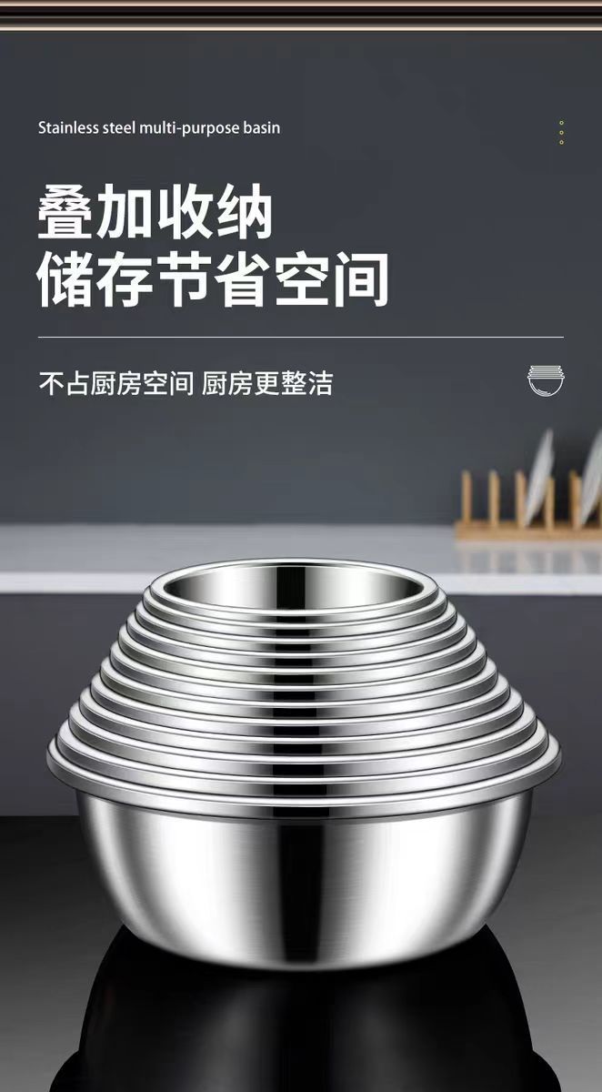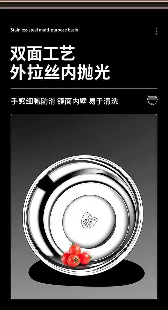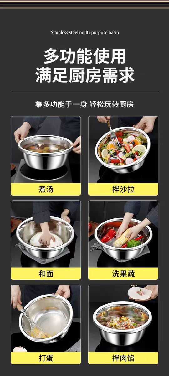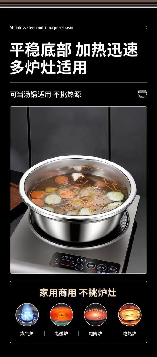 特厚304不锈钢盆家用汤盆厨房打蛋食品和面盆洗菜烘焙级特大盆子