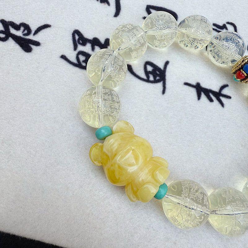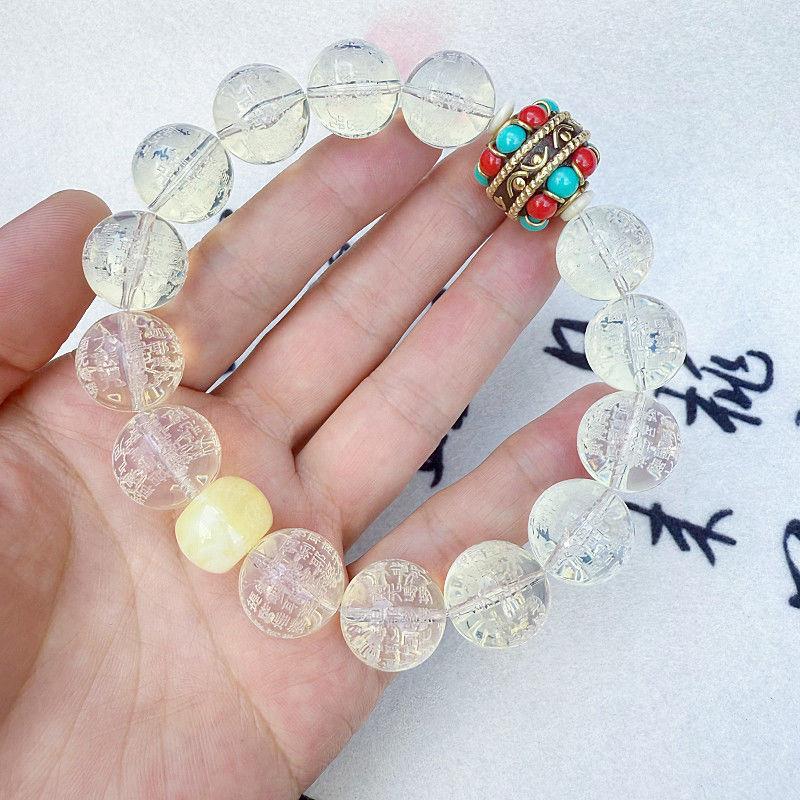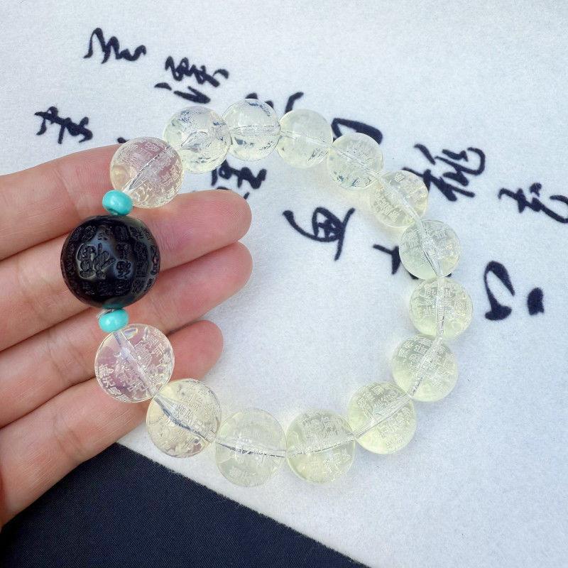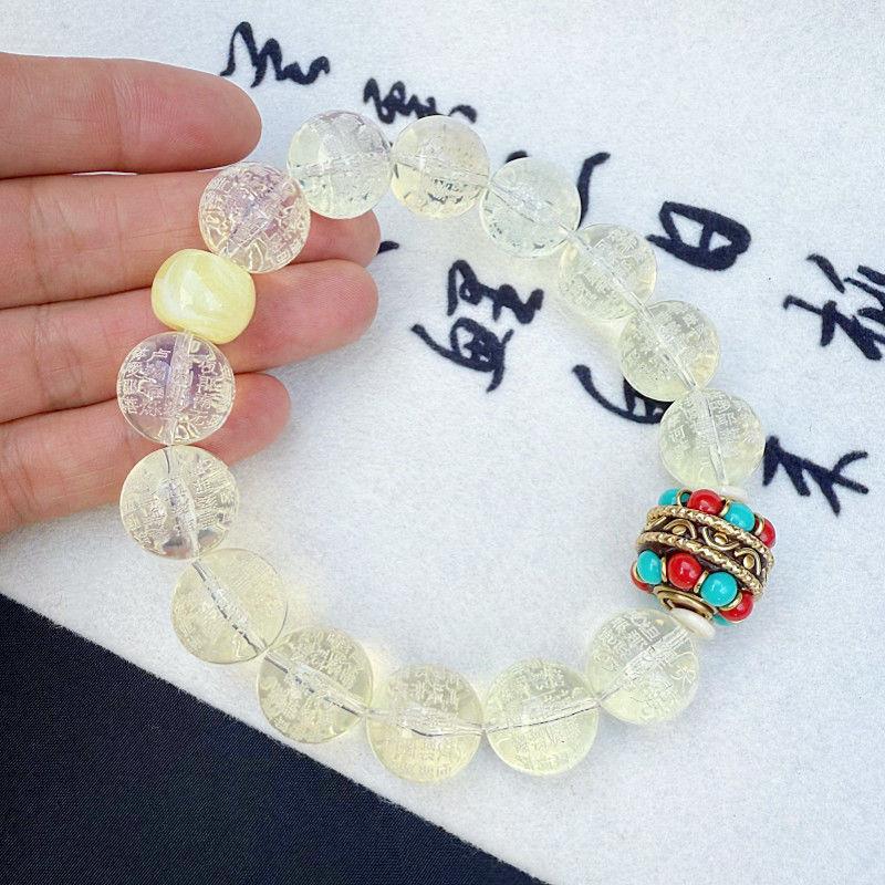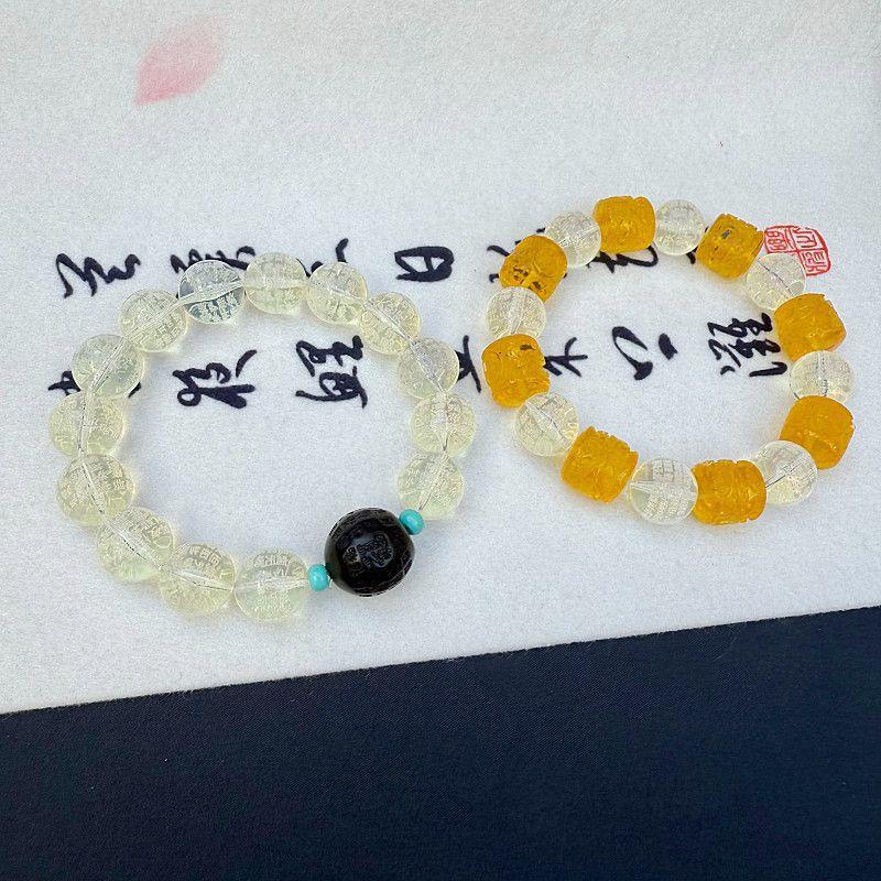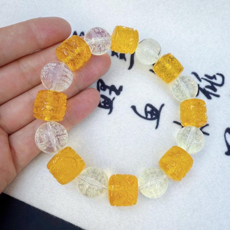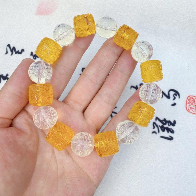 最適化された琥珀浄水金琥珀彫刻大慈悲マントラブレスレットラウンドビーズブレスレット彫刻富と宝を引き寄せる古いスタイルのビーズ男性と女性用