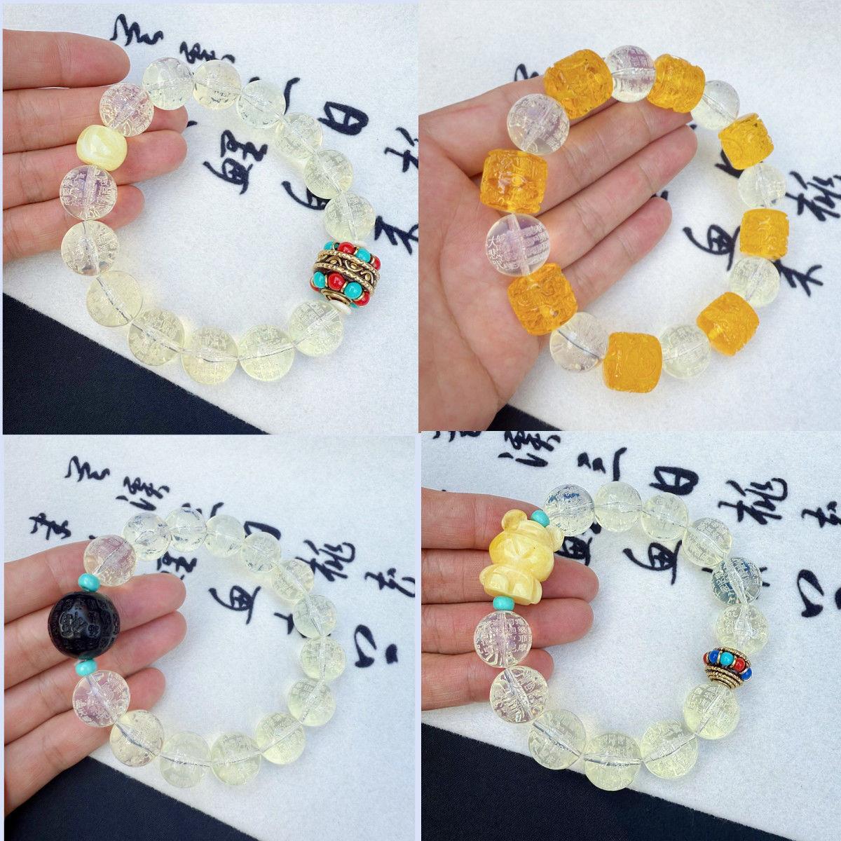 黄水晶丸玉ルースビーズ半製品クリスタル無添加色DIY手作りアクセサリー卸売ブレスレット水
