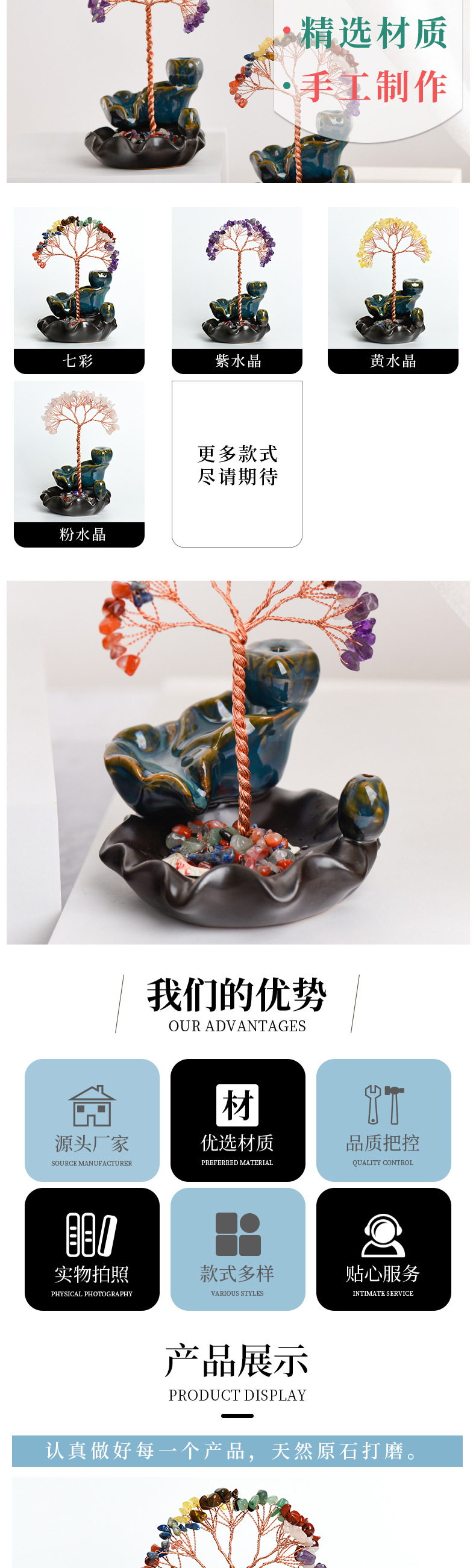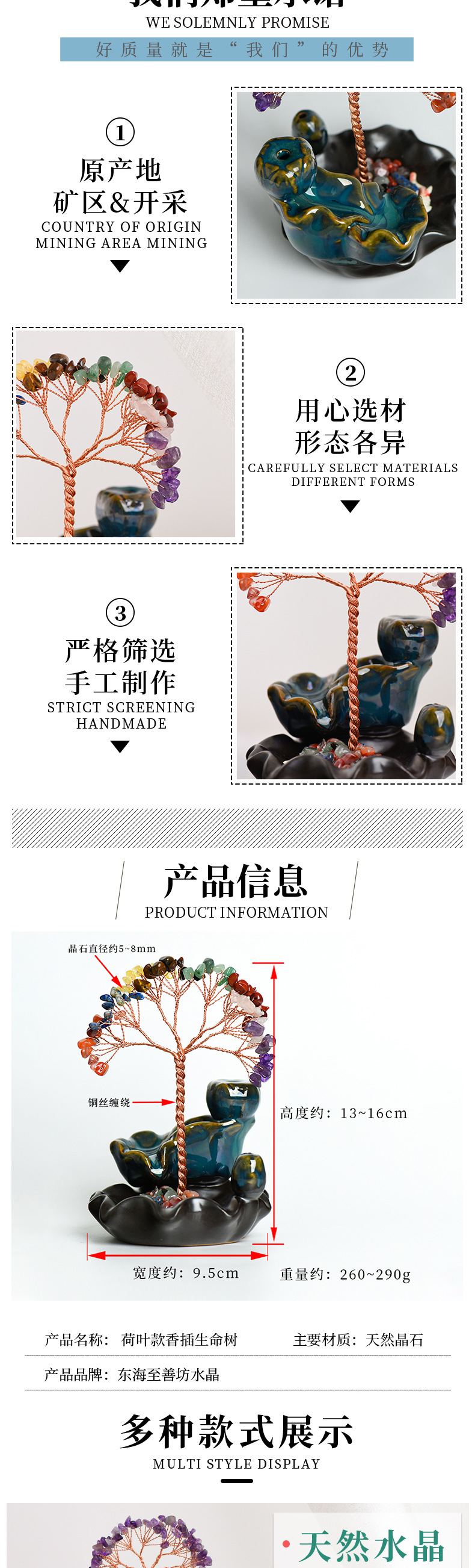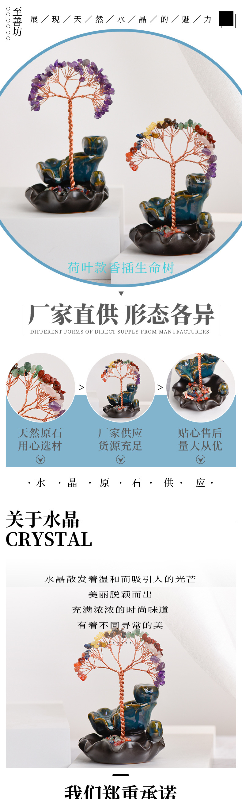 卸売カラフルなクリスタルツリー香炉装飾品蓮座装飾品工芸品アメジストクリエイティブツリーオフィスデスク装飾