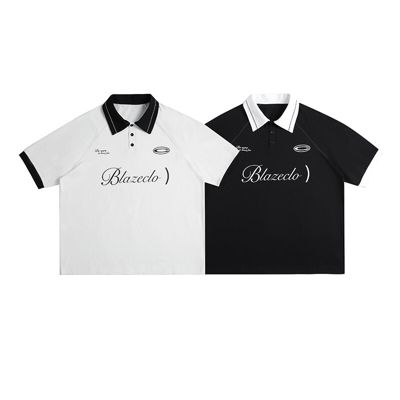 Urban Fanpin 2025 夏新作 ソロナ アメリカンレタープリント コントラストカラーラペル POLO