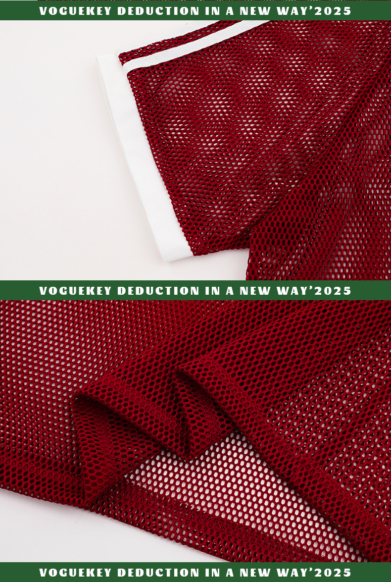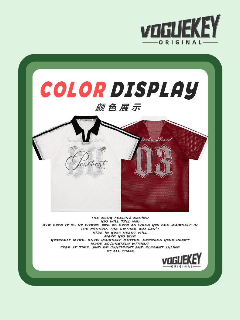 纵驰衣社字母印花V领短袖t恤夏季镂空球衣宽松罩衫男女网眼上衣
