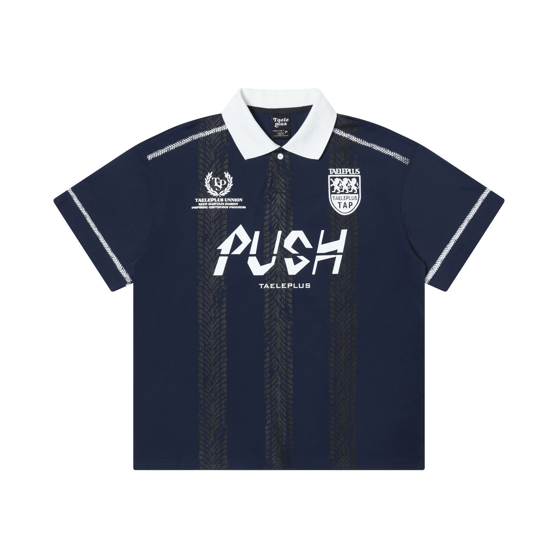 縦馳衣社2025新型アメリカレトロ運動襟襟トレンドアルファベットプリント男性夏ゆるいtシャツ