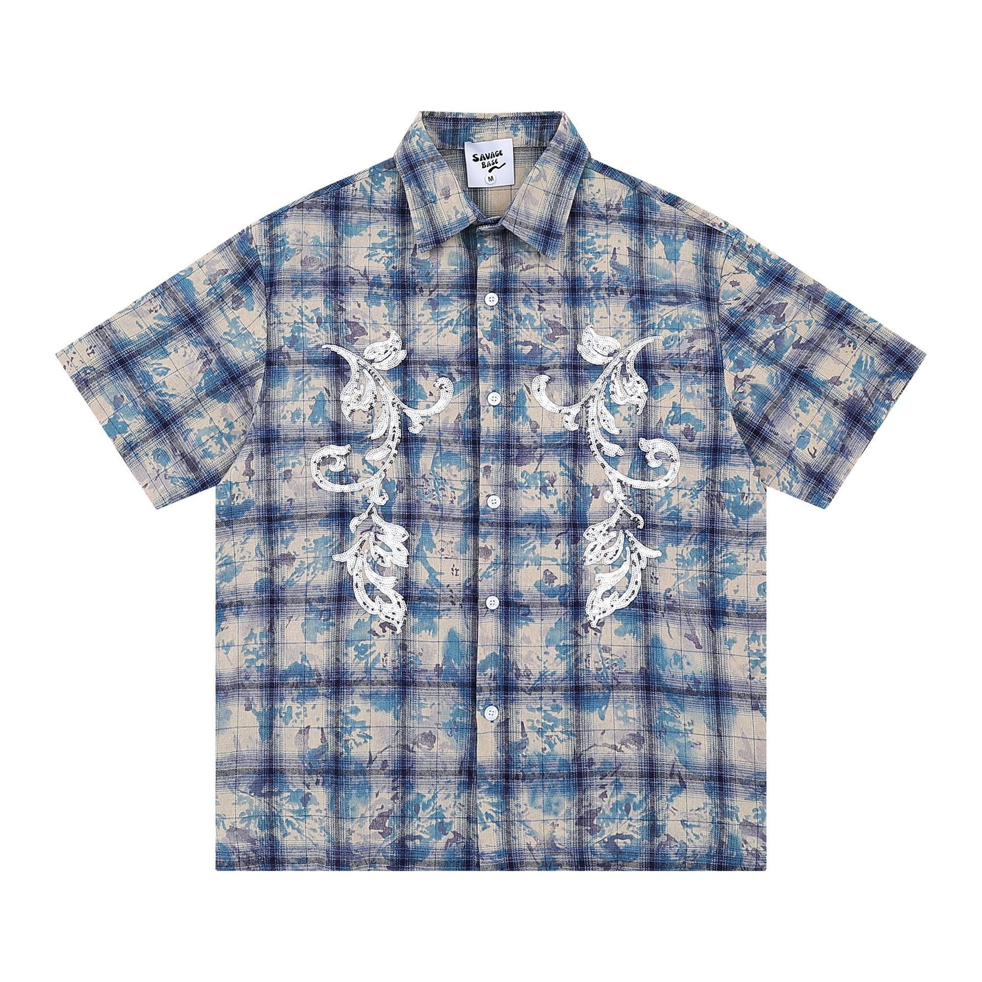 縦馳衣社2025新型夏アメリカレトロヒップホップトレンド襟シャツ高街潮牌半袖シャツ