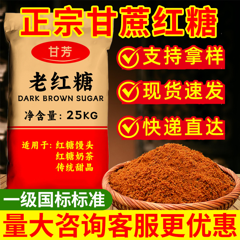 甘芳纯正甘蔗老红糖50斤商用大包装手工老红糖奶茶馒头专用红糖粉