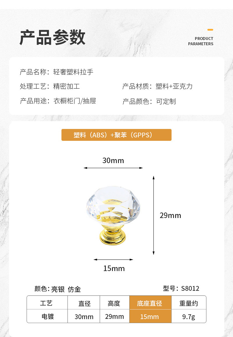 亚克力水晶拉手 组合多款式现货抽屉把手家具配件 轻奢单孔小拉手