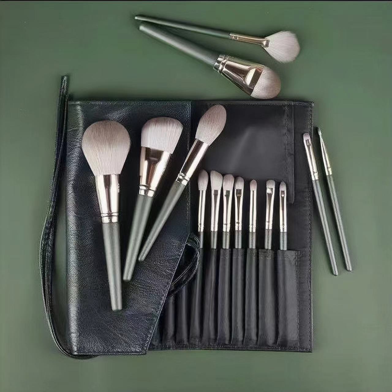 13本入り化粧ブラシセット、四季緑のベルベットバッグ入り、美容ツール、抹茶ブラシ、ブラシ一式付き