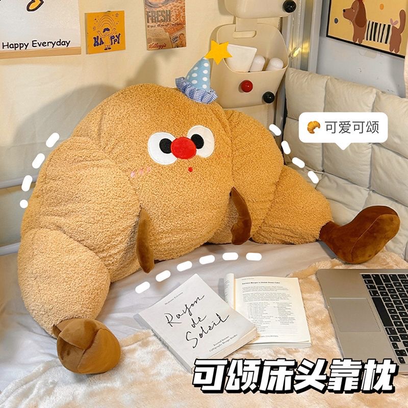 牛角包は枕のベッドの上の柔らかいバッグの大きい背もたれのパンを包んで腰を保護して枕のソファーに寄りかかって枕の寮の枕のクッションの女子学生を抱きます。