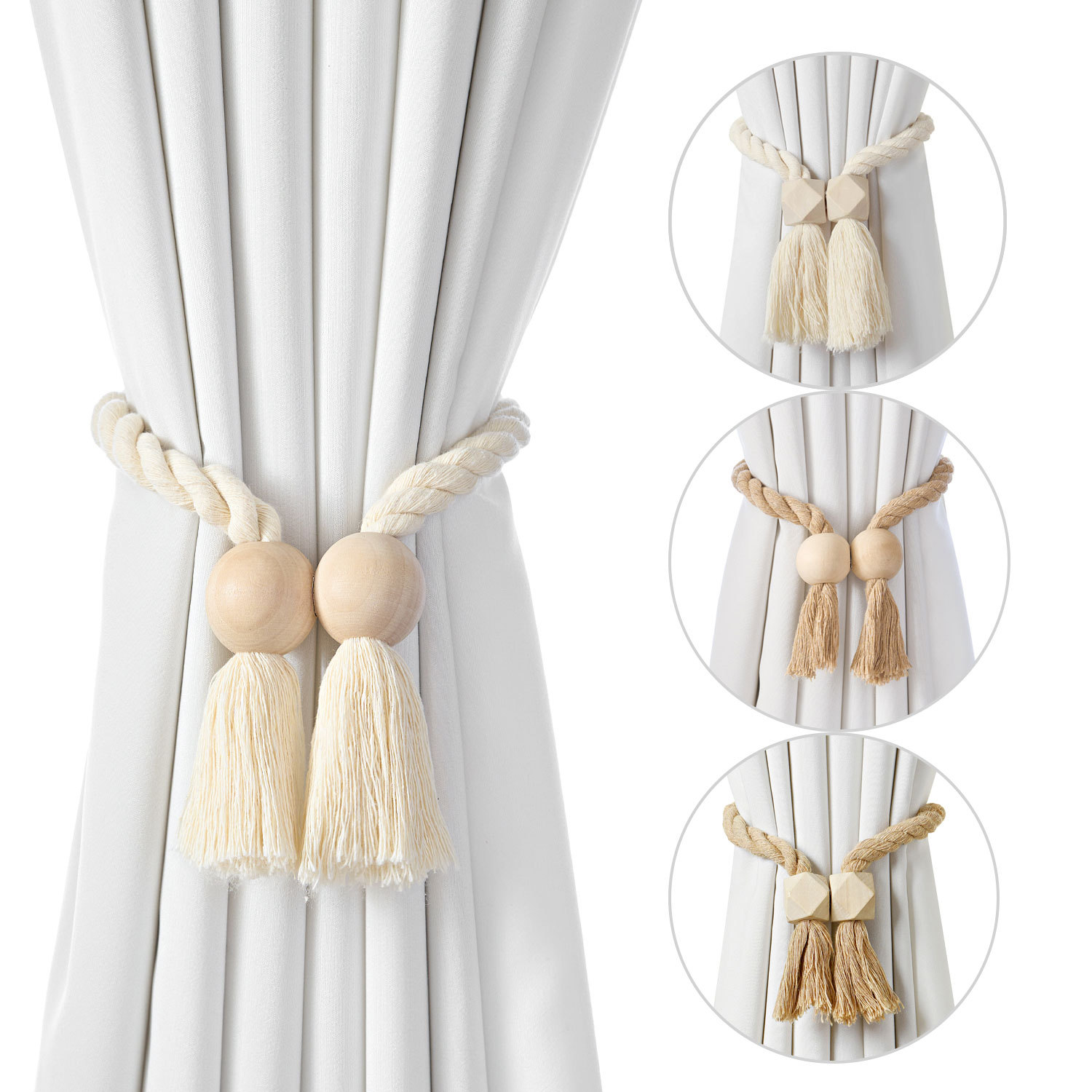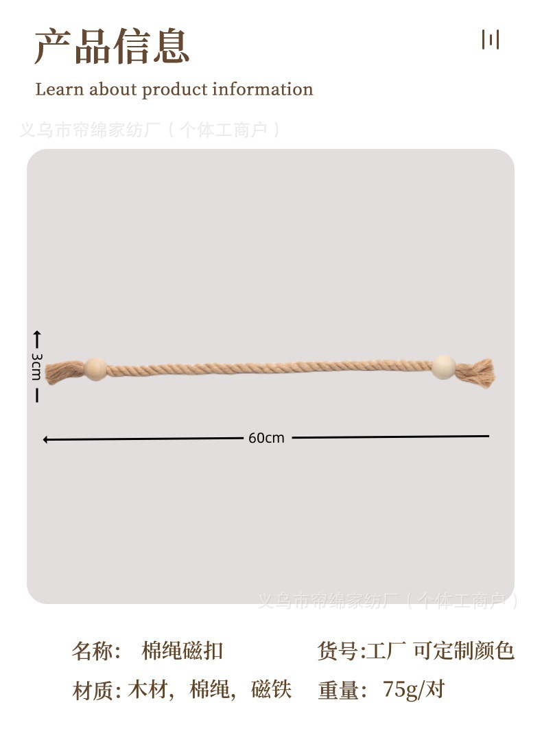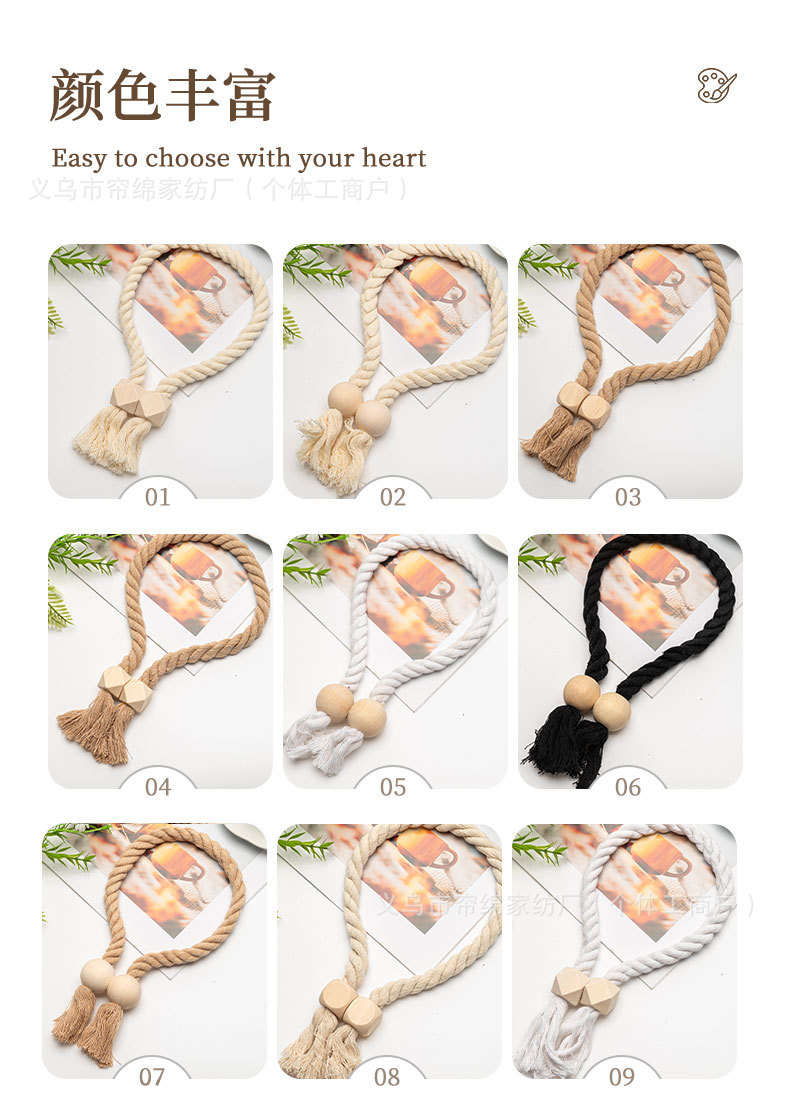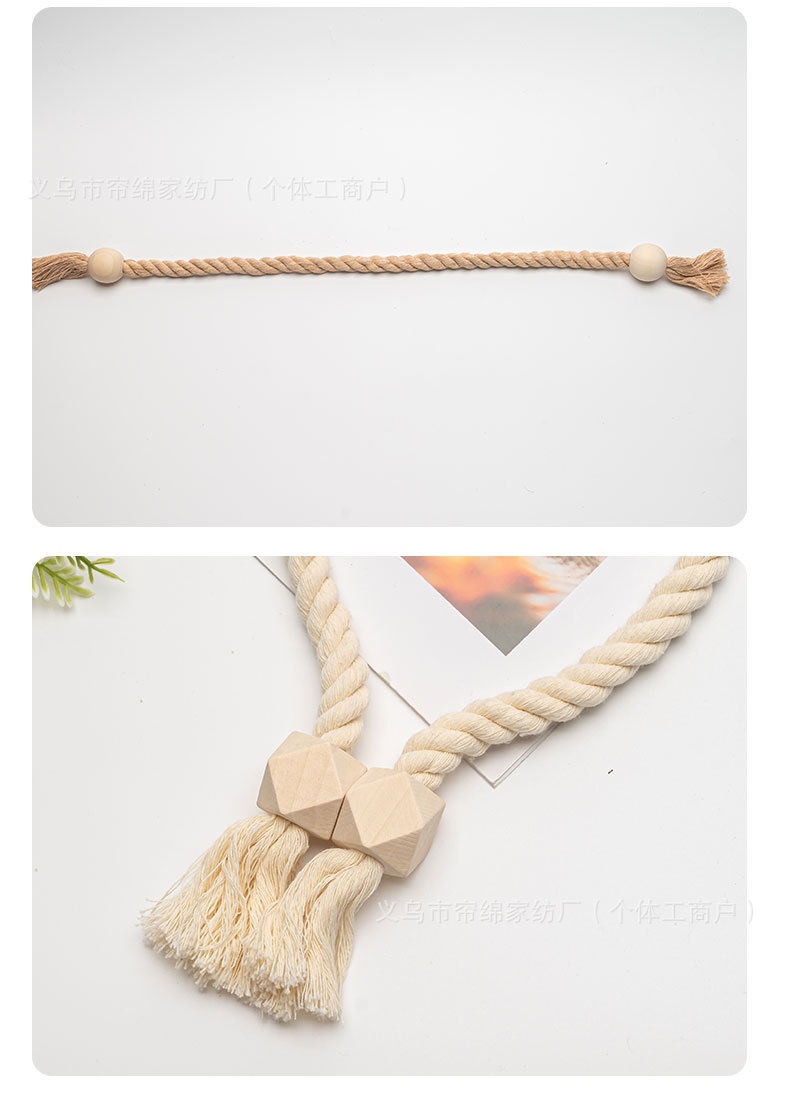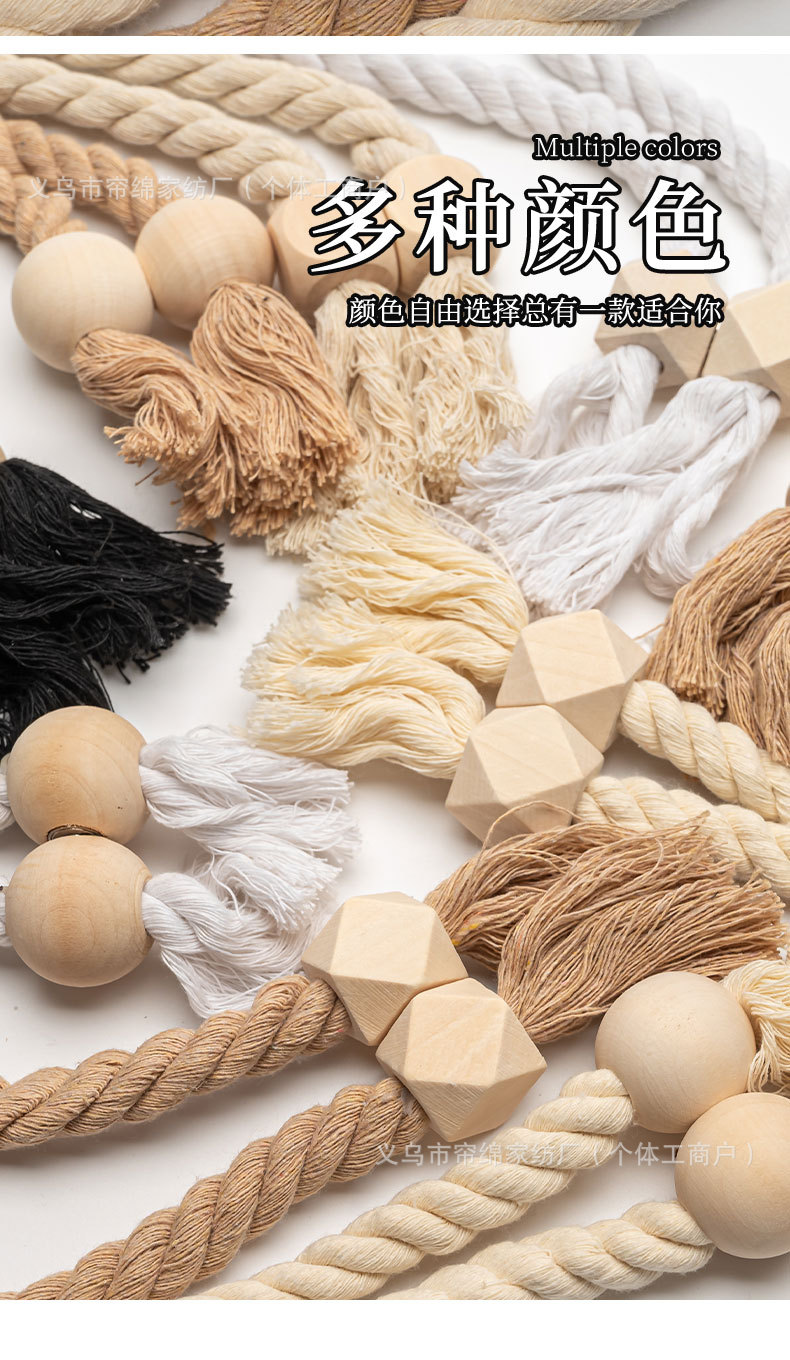 跨境外贸temu热销棉线木质圆珠魔方磁吸窗帘绑带流苏百搭窗帘扣绳