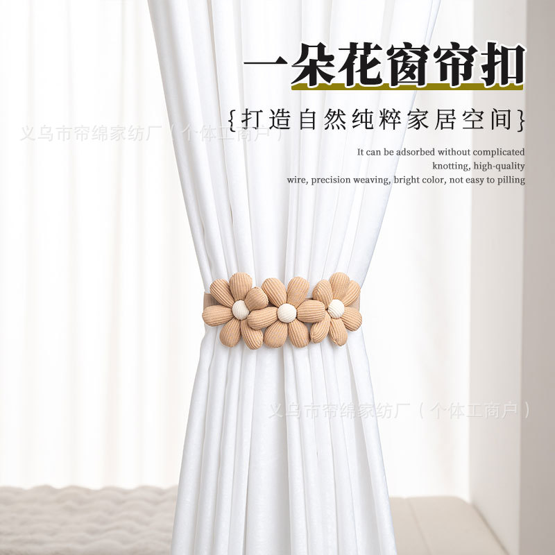 3つの花の調節可能なカーテンストラップ、シンプルな漫画の花、パンチフリーロープ、装飾バックル、クロスボーダーカーテンバックル