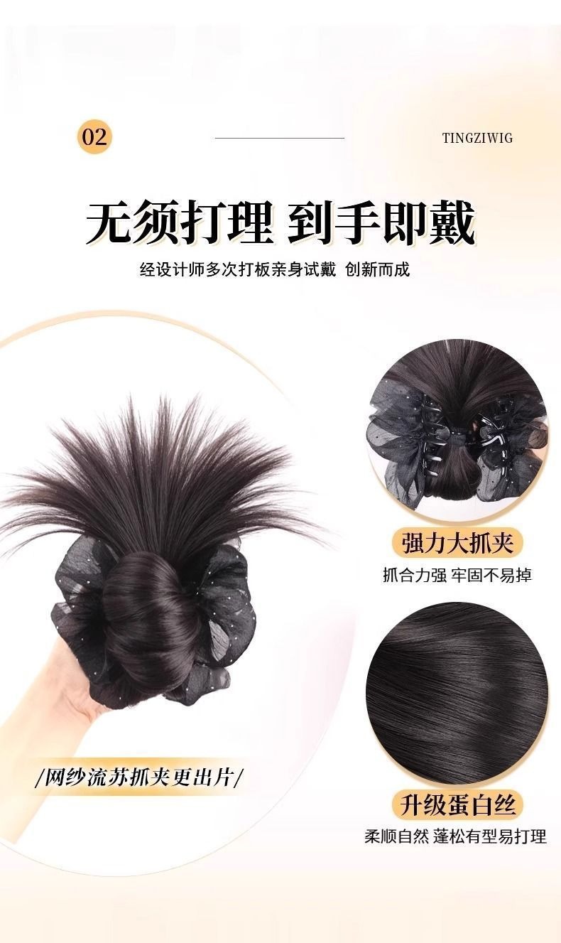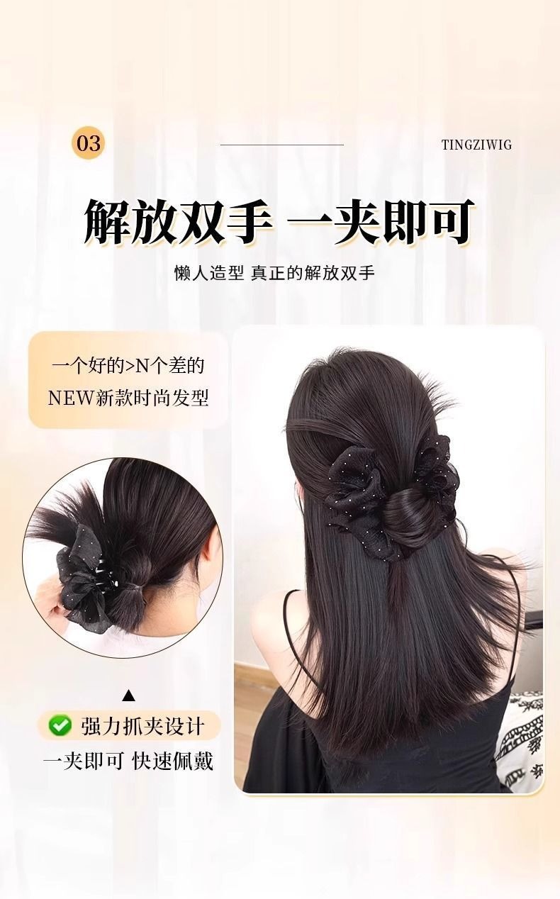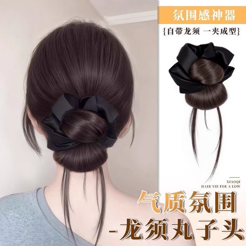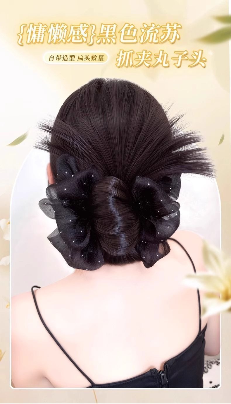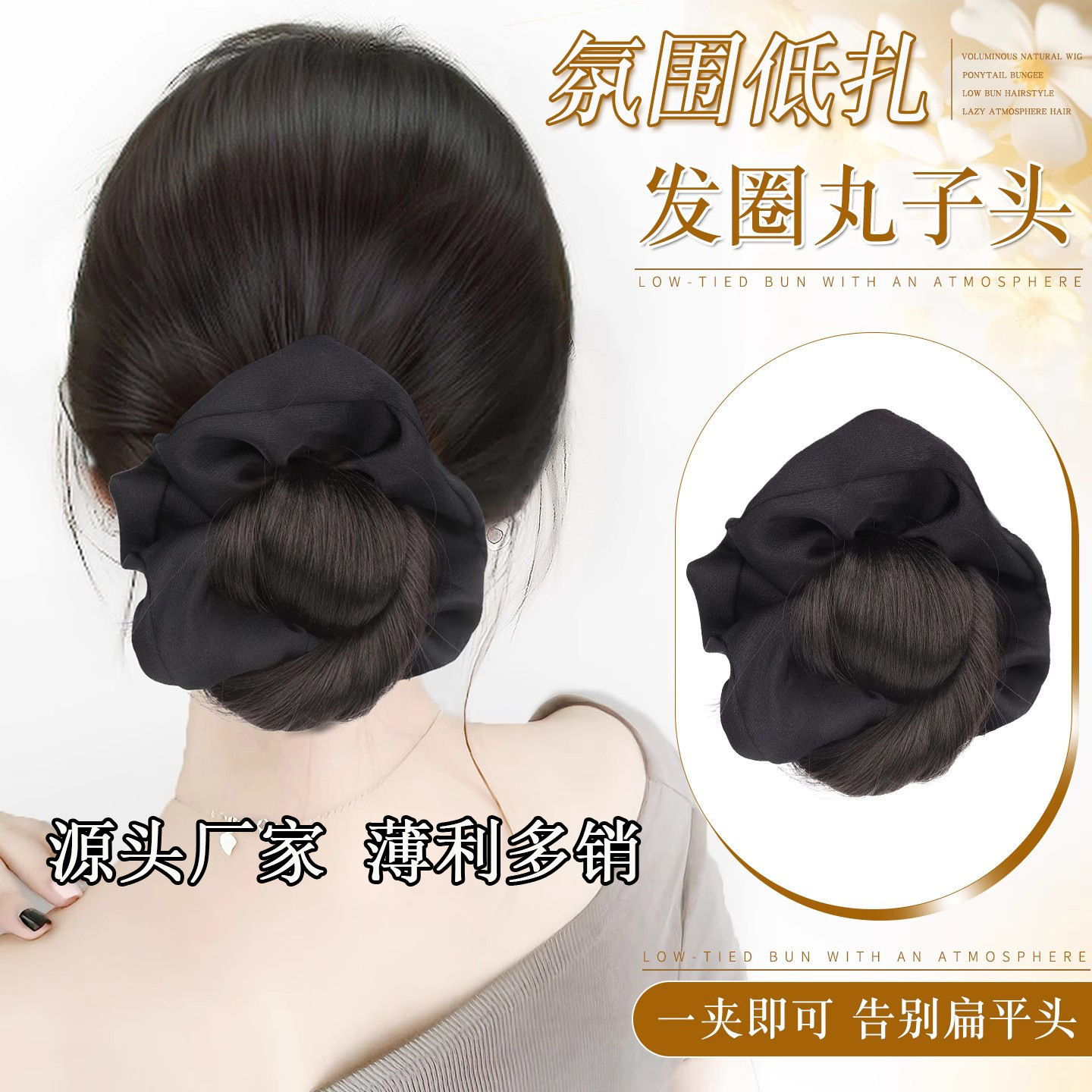 低丸子头假发抓夹花苞头假发鬓盘发发圈发饰后脑勺蓬松神器假发包
