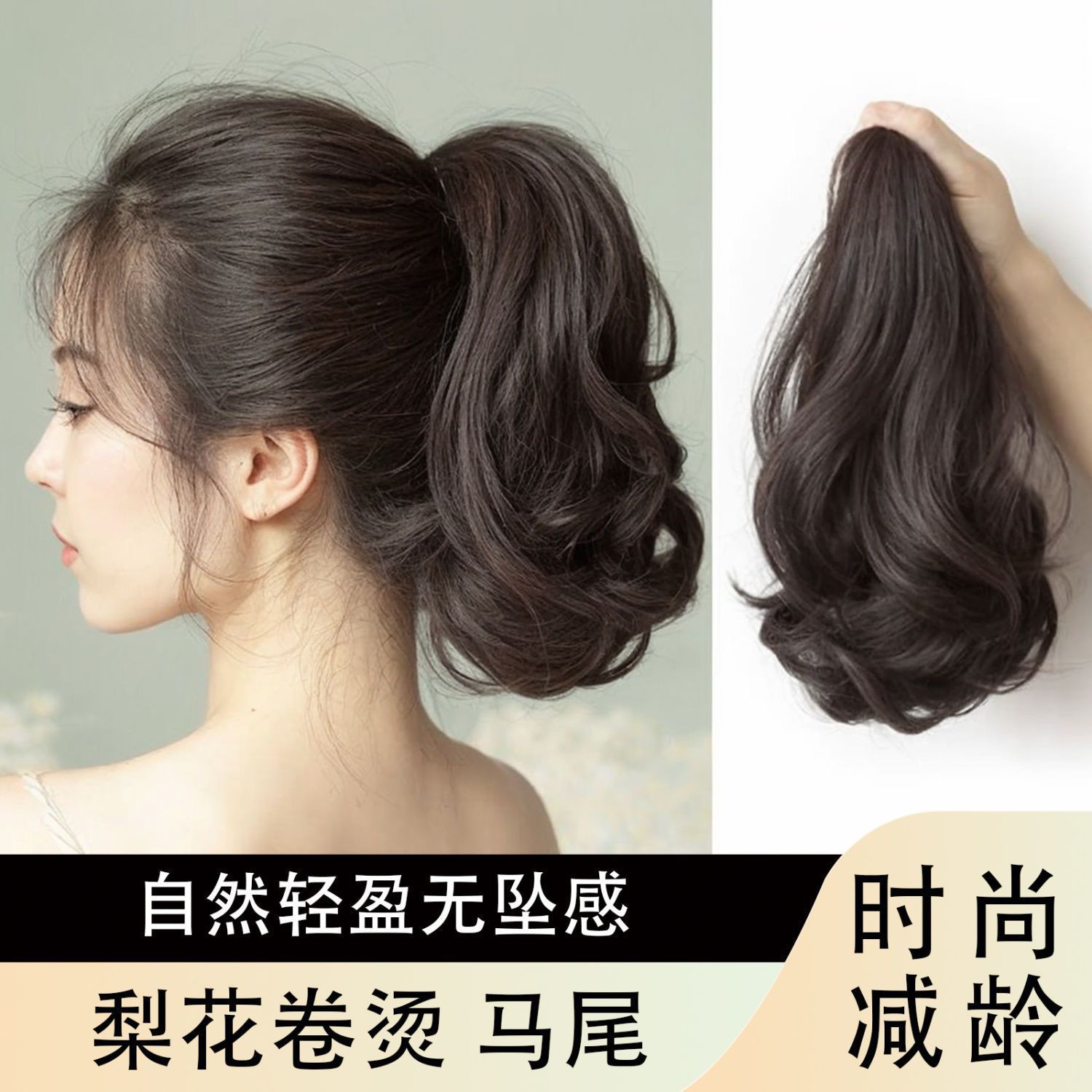 梨の花の女性用ウィッグ グリッパー ショート ポニーテール ショート フェイク ポニーテール 梨の花のカーリー三つ編み ロータイ ナチュラル シミュレーション 目に見えないふわふわ