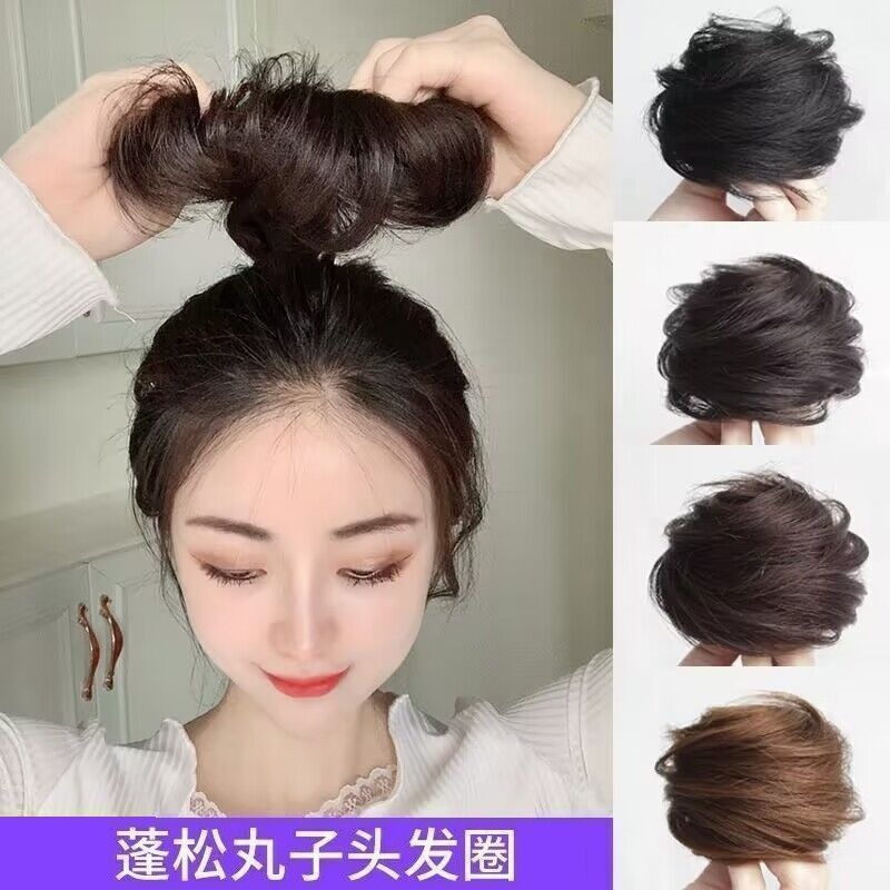 丸子头假发抓夹低扎发圈自然慵懒感盘发后脑勺增发量神器假发包