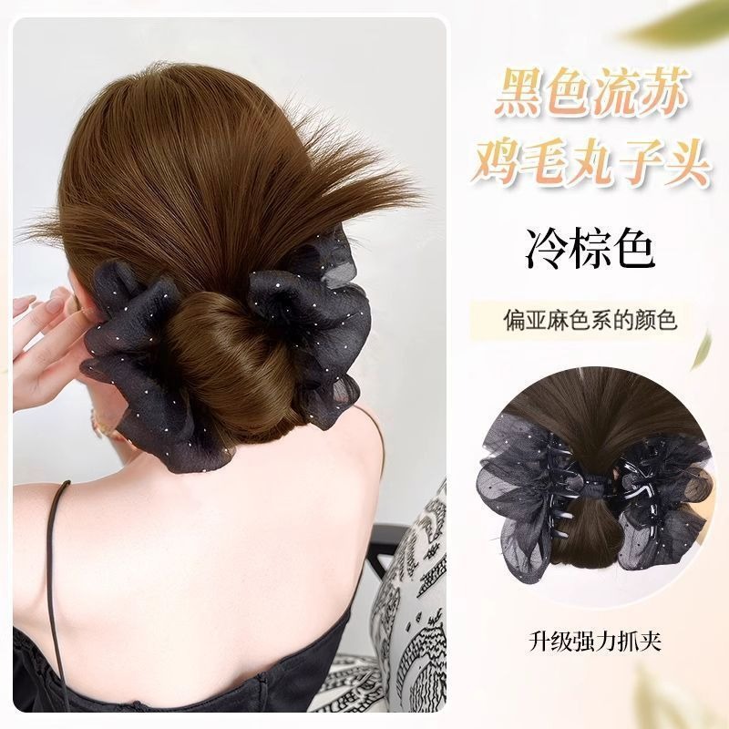 龙须丸子头假发抓夹女发圈花苞头松弛盘发神器低丸子头蓬松假发包
