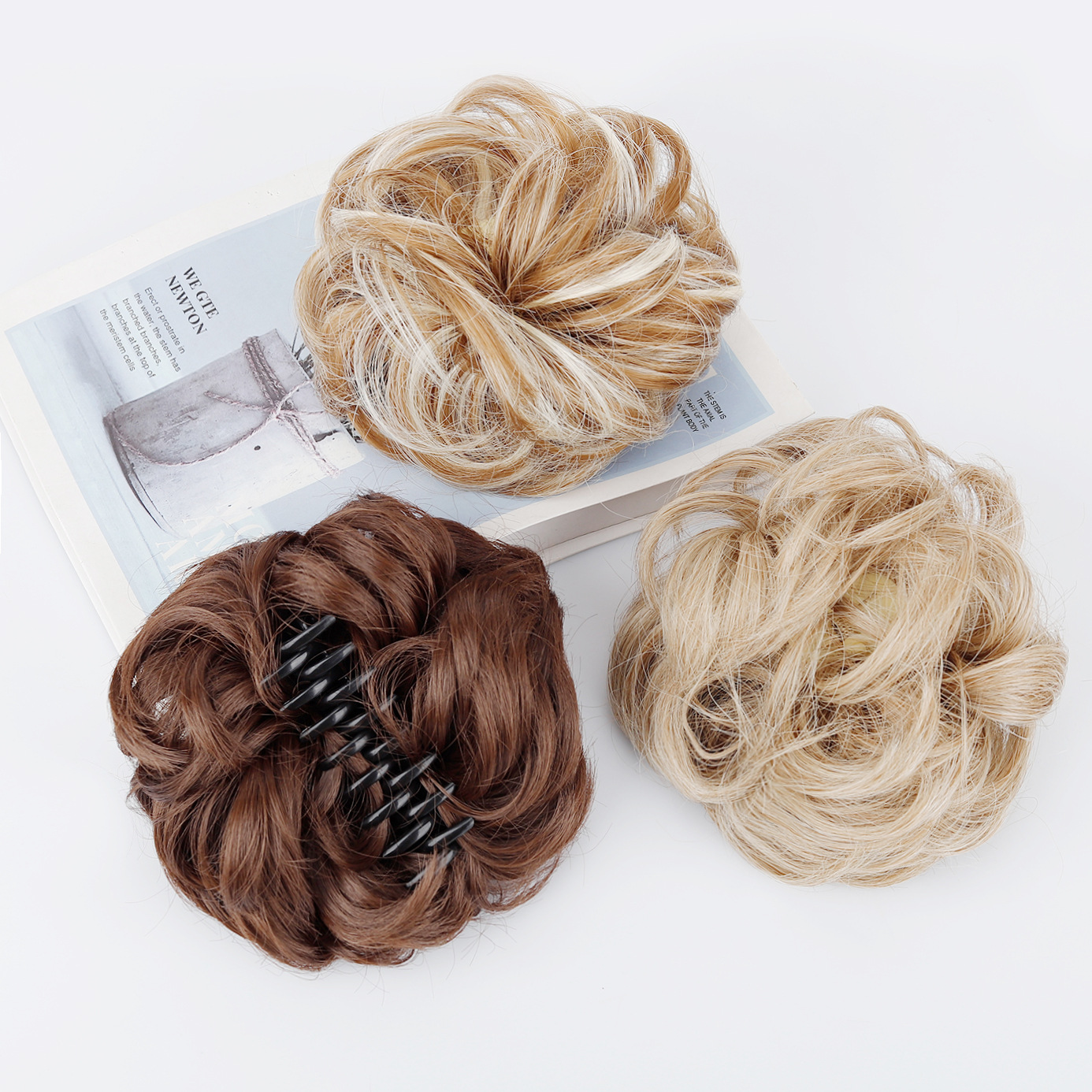 女性用羽毛ヘアウィッグ、ボールヘア、新しいローヘアスタイル、ふわふわ後頭部ウィッグリングコレクション