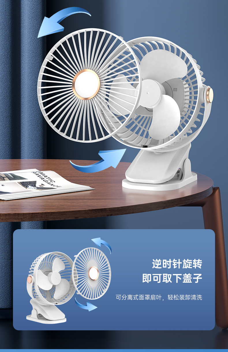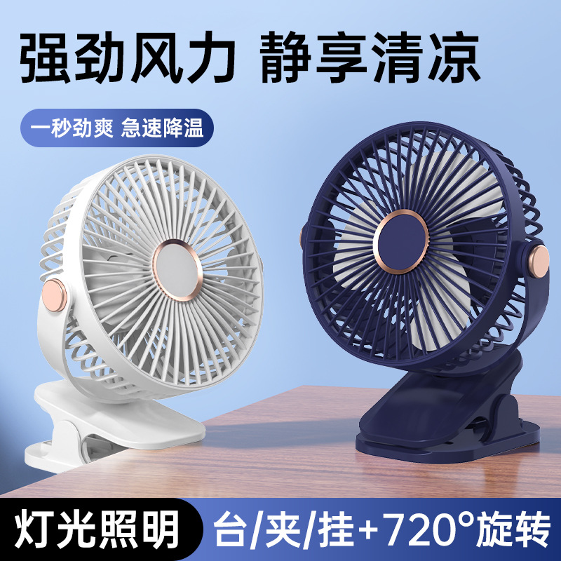 夹式小风扇学生宿舍床上夜灯夹扇办公室桌面usb充电夹子灯光