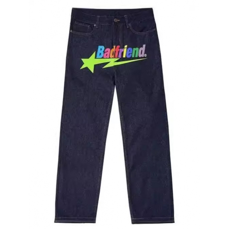 Y2k ジーンズ Badfriend レタープリントパンツヒップホップルーズデニムパンツ原宿パンクストリート