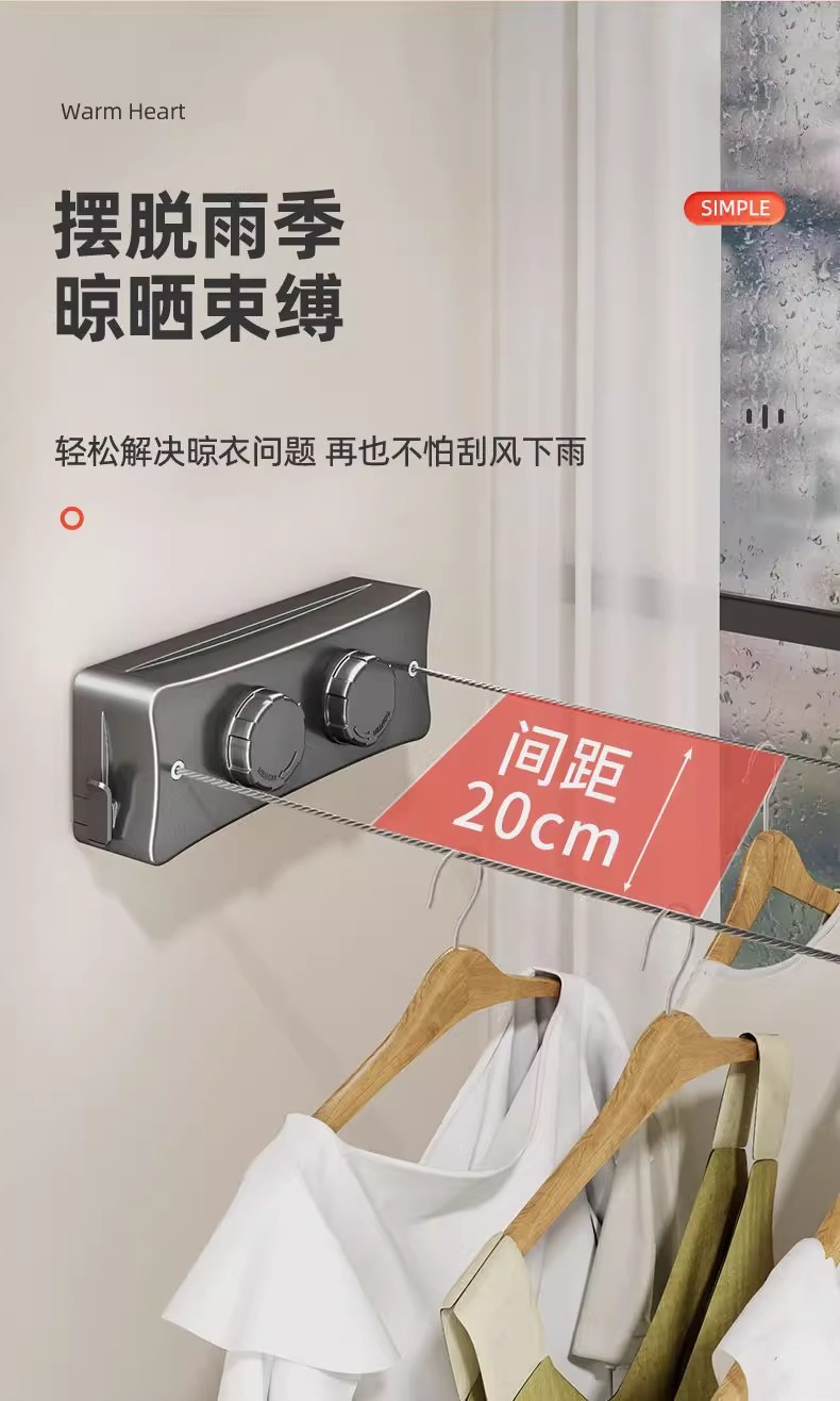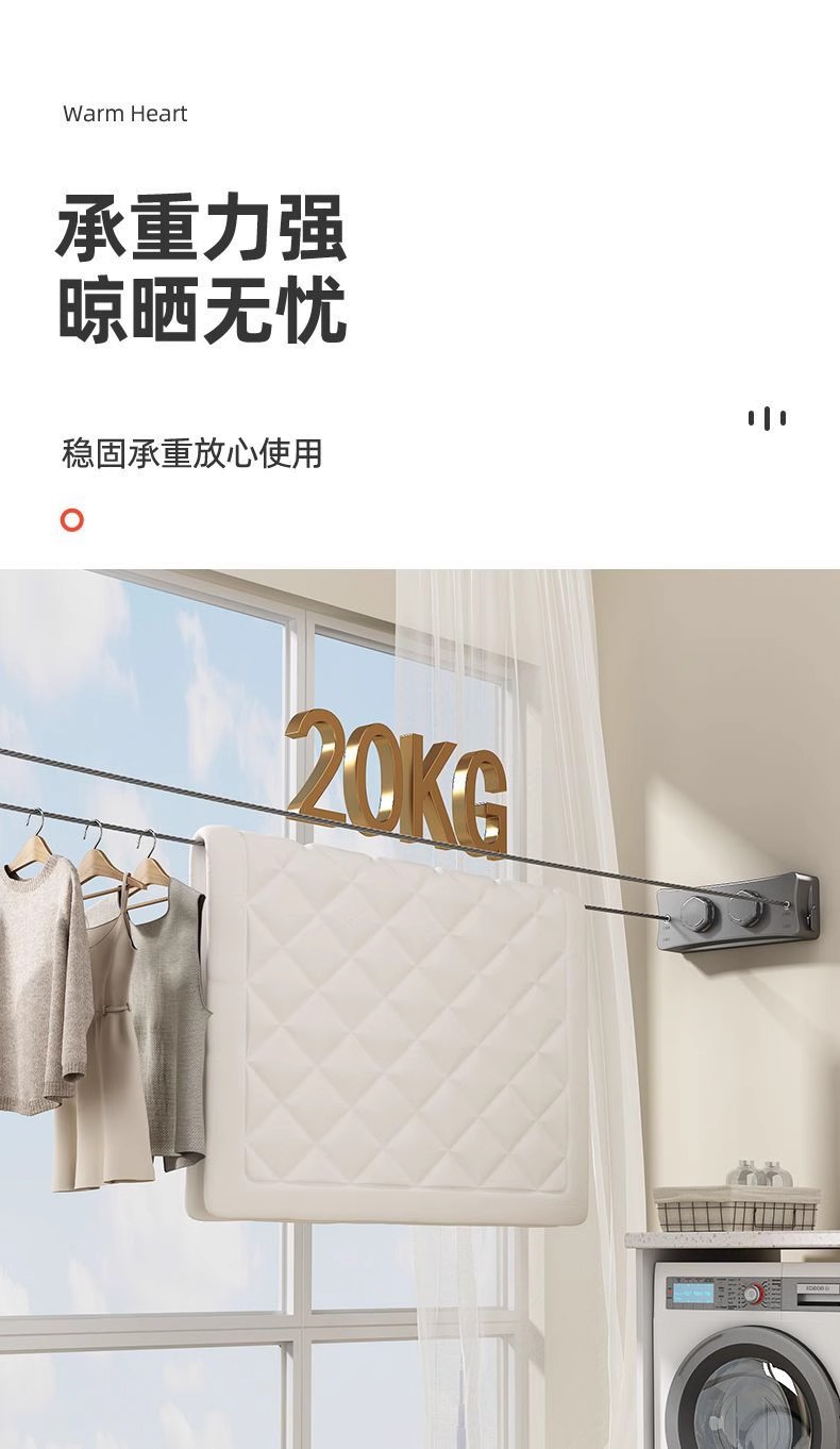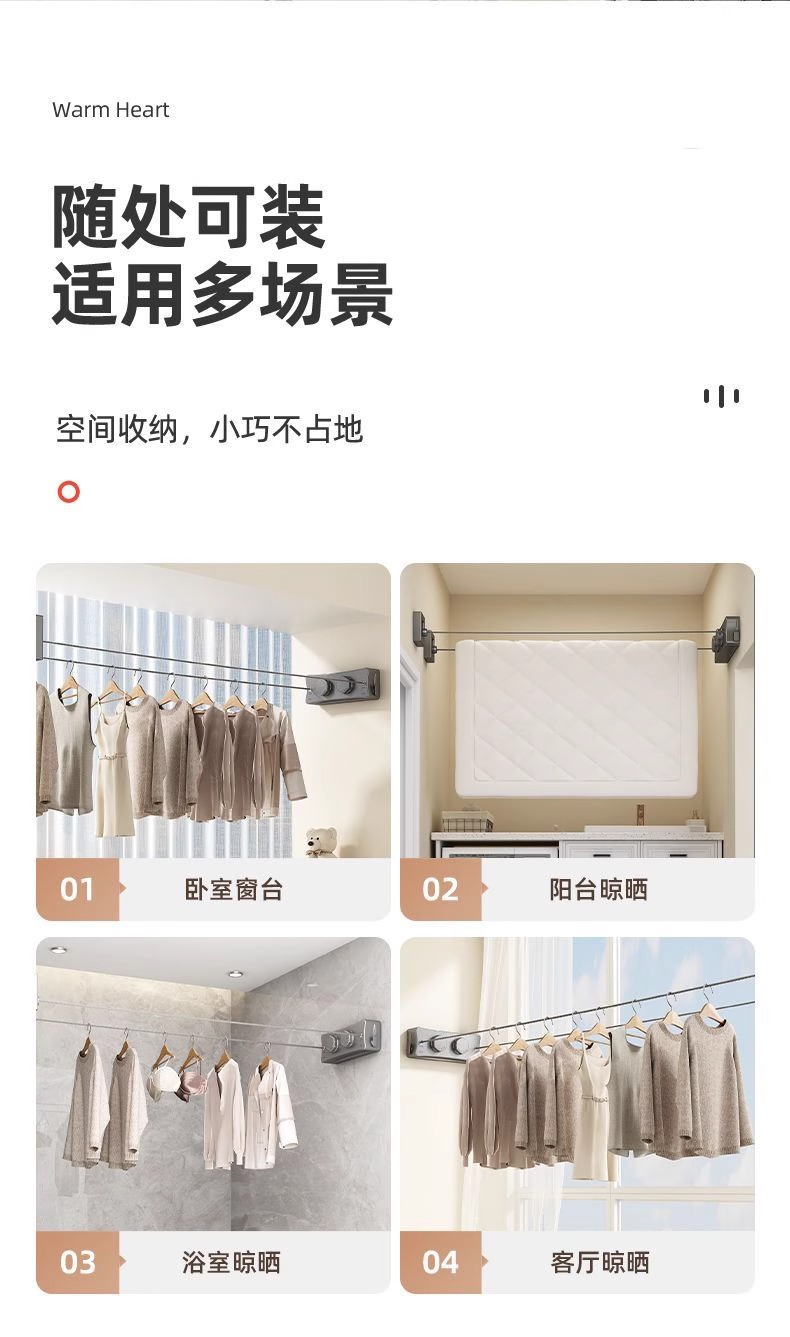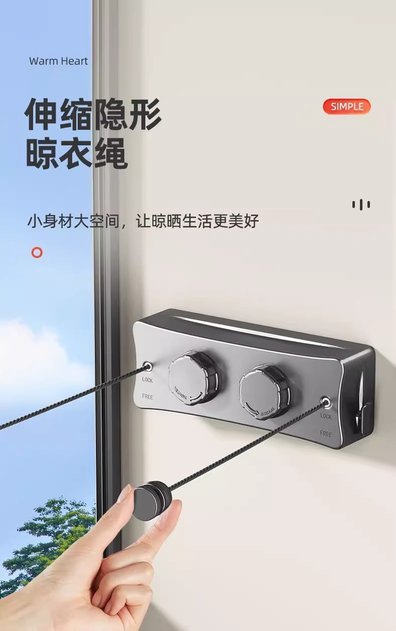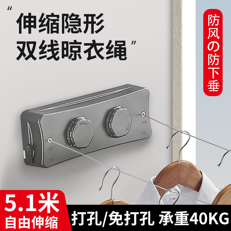 クロスボーダーステルス物干しロープ収縮干し衣類神器室内穴なしトイレ伸縮バルコニーワイヤーロープ