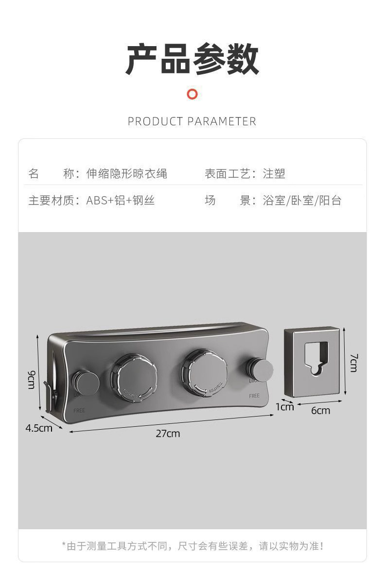 目に見えない物干しロープ、屋内パンチフリー、バルコニー収縮物干し加工品、浴室物干しラック、ワイヤーロープ