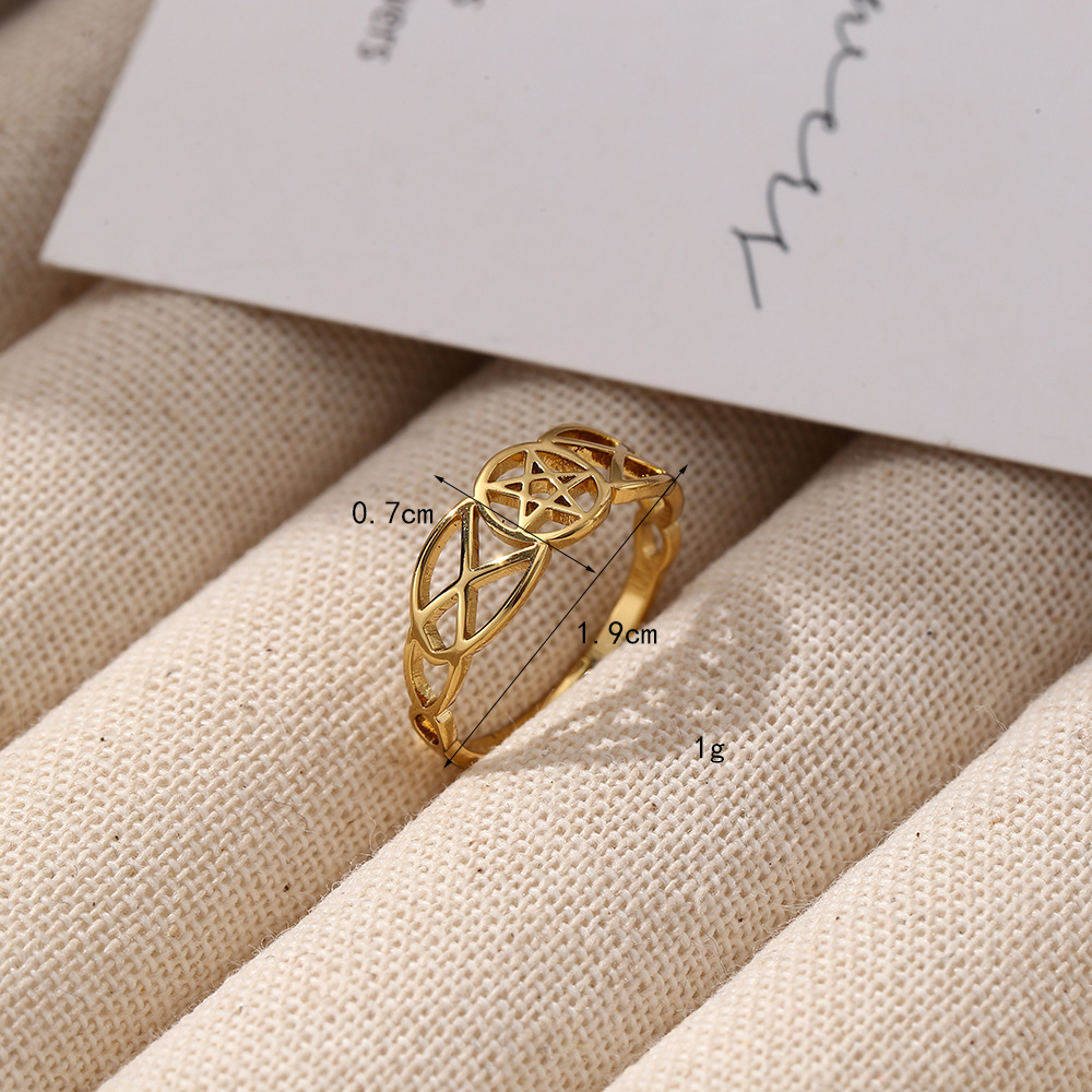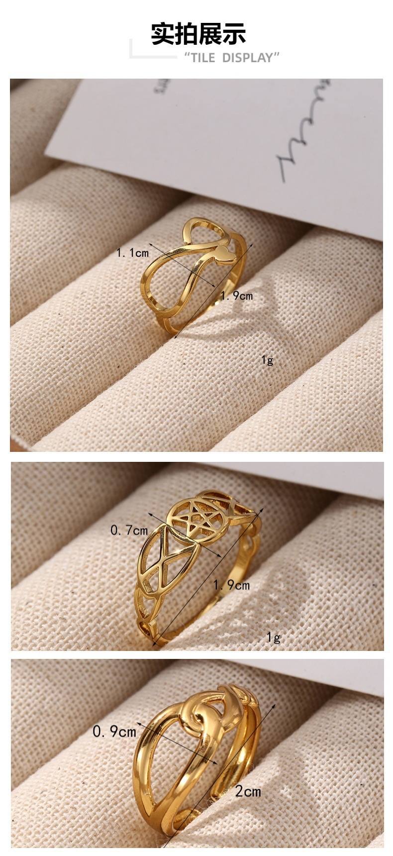 欧米の越境ステンレスの指輪は18kの金をめっきして色を落とさないで愛の花の光沢の個性の開口のチタンの指輪を塗ります。