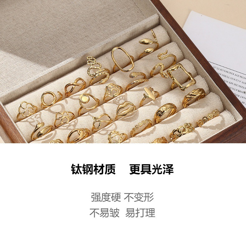 欧米の越境環境保護の個性は誇張して金色の溶岩の線の不規則な水滴の光沢の指輪のセットの15セットを誇張します。