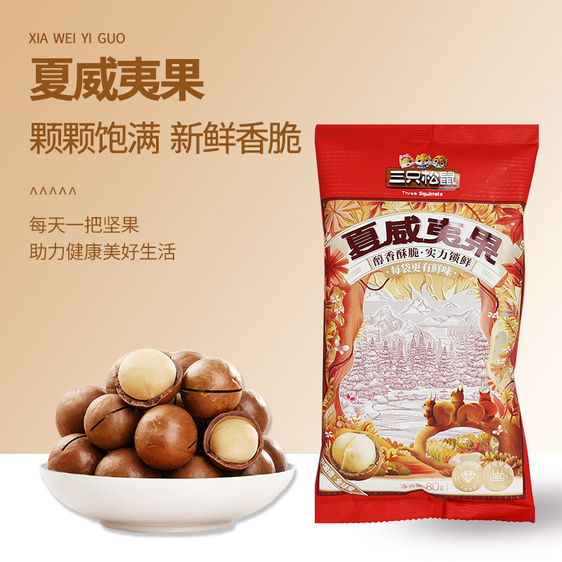 批发三只松鼠夏威夷果80g新鲜送开口器休闲坚果零食奶油味包邮