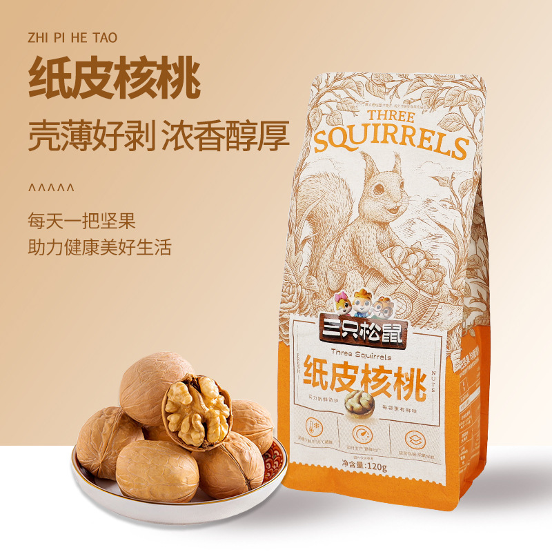 批发三只松鼠原味纸皮核桃120g新货新疆薄皮易剥坚果休闲零食包邮