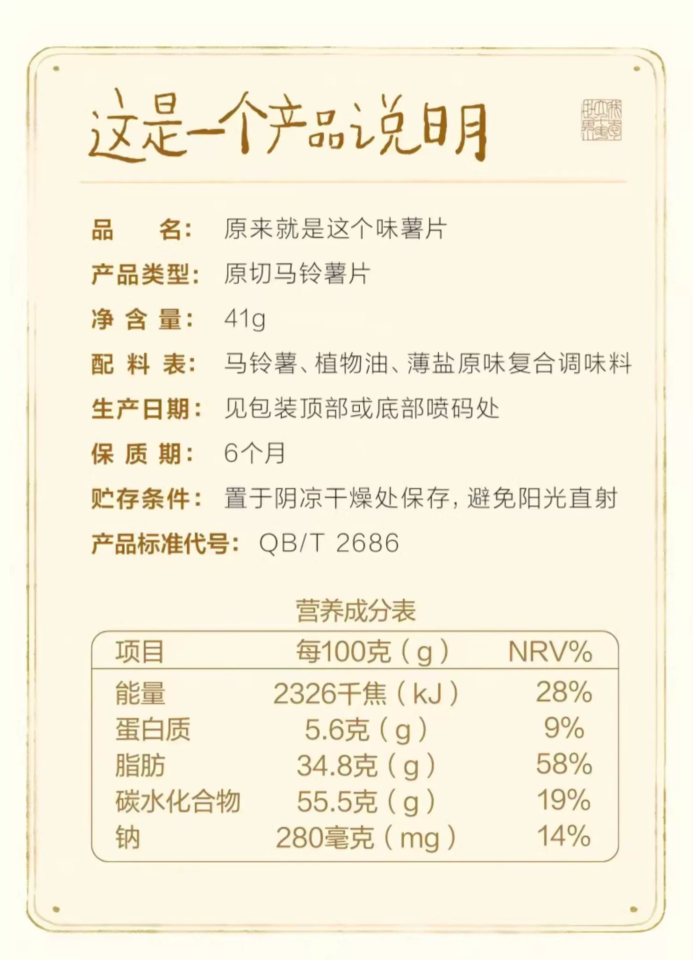 茶颜悦色原来就是这个味薯片41g浓郁土豆原切薯片酥脆休闲零食