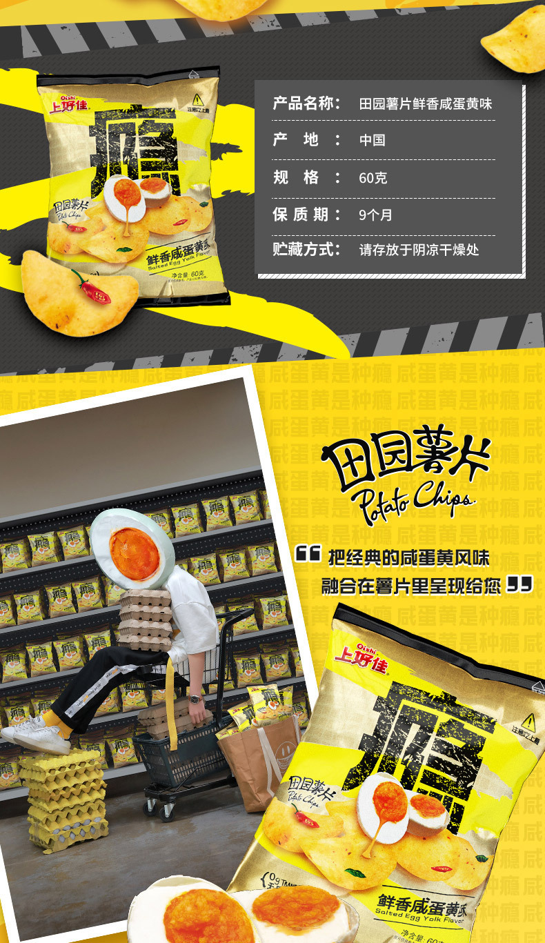 上好佳田園ポテトチップス 新鮮な塩味卵黄味 60g/袋 インターネットセレブのおいしいポテトチップス オフィスレジャー パフスナック