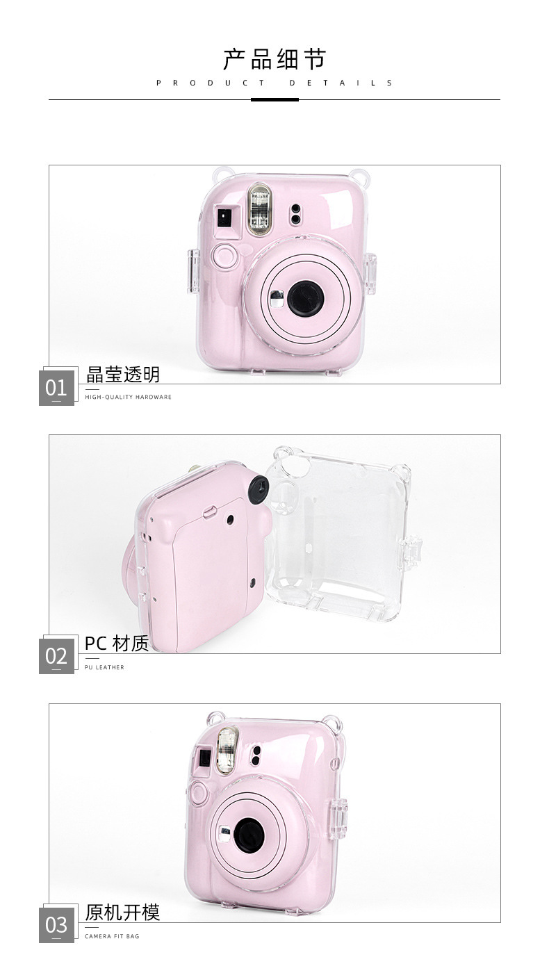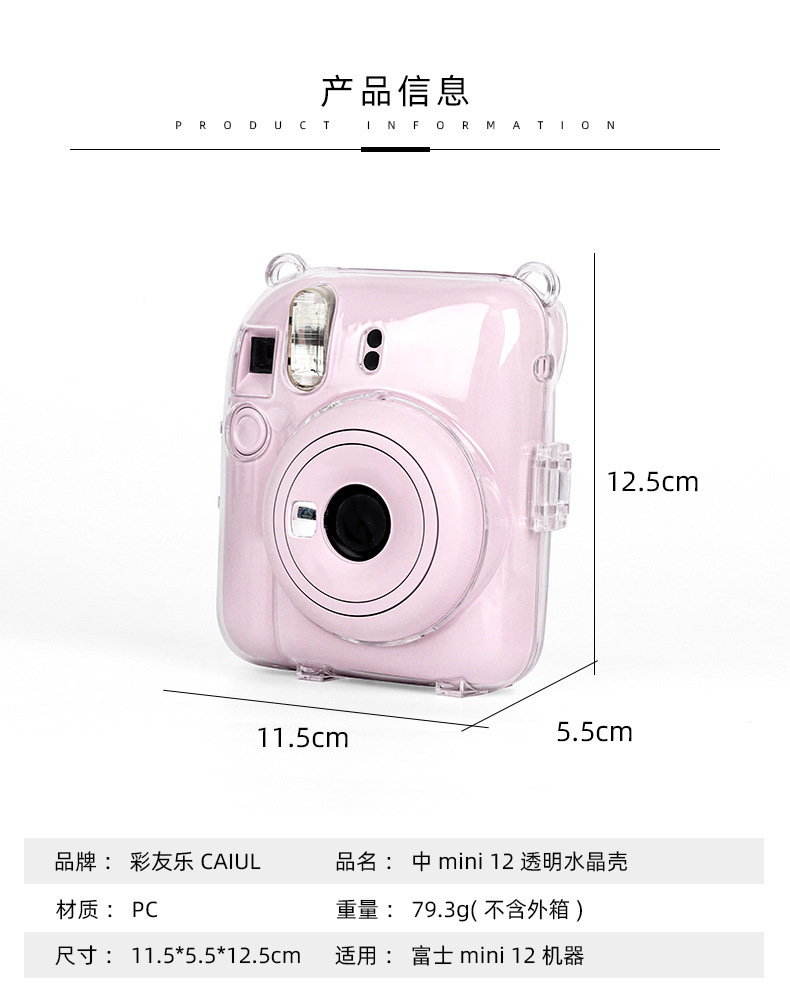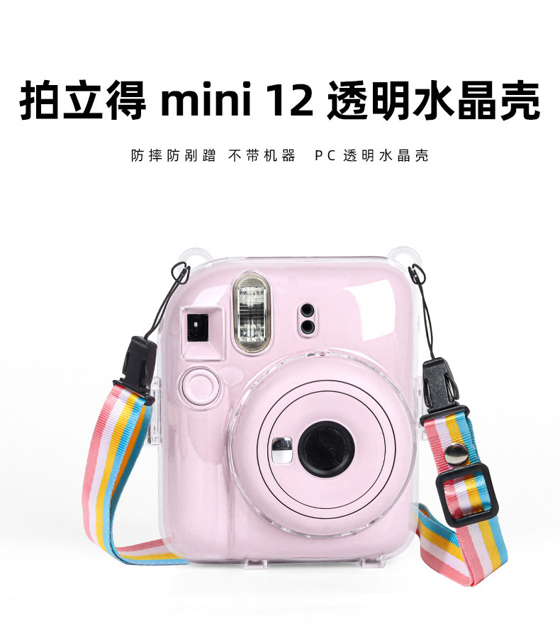 适用拍立得instax mini12透明水晶壳 耐用防刮防摔收纳壳保护无绳