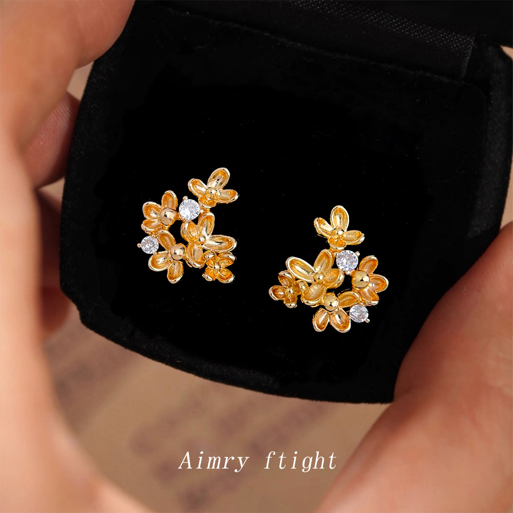 ミニバージョン〜ジルコン小花925シルバー針メッキ14K甘いシンプルな軽い高級スタイル通勤イヤリング工場イヤリング