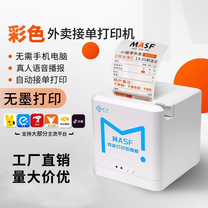 美团饿了么彩色外卖打印机WiFi全自动接单小票机4G餐饮双色专用