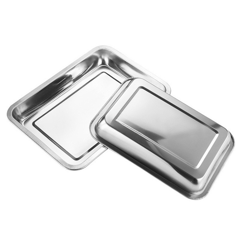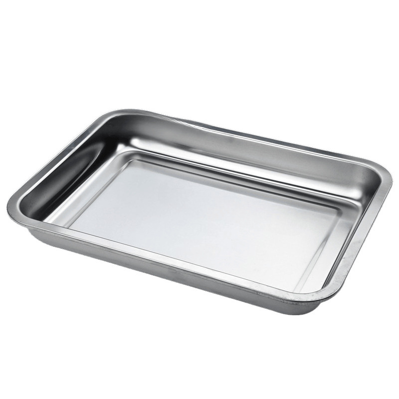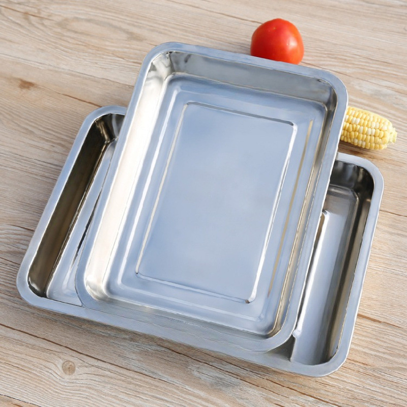 厚みのあるステンレス鋼の長方形の平皿、大型の業務用調理済み食品の冷菜プレート、家庭用蒸し米鉄板、焼き魚トレイ