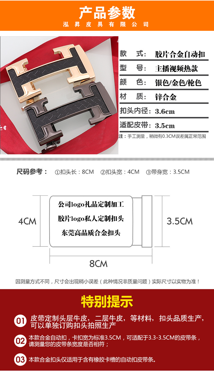 泓昇男款皮带扣自动扣头皮带头胶片腰带扣胶弹簧自动头腰带头卡扣