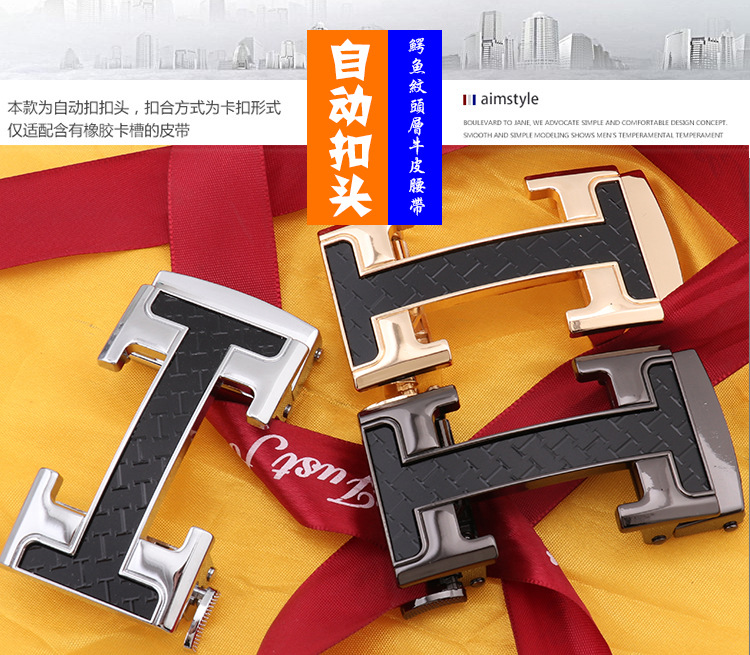 泓昇经典合金自动扣男士两件套激光工艺腰带扣自动扣软方形纹批发
