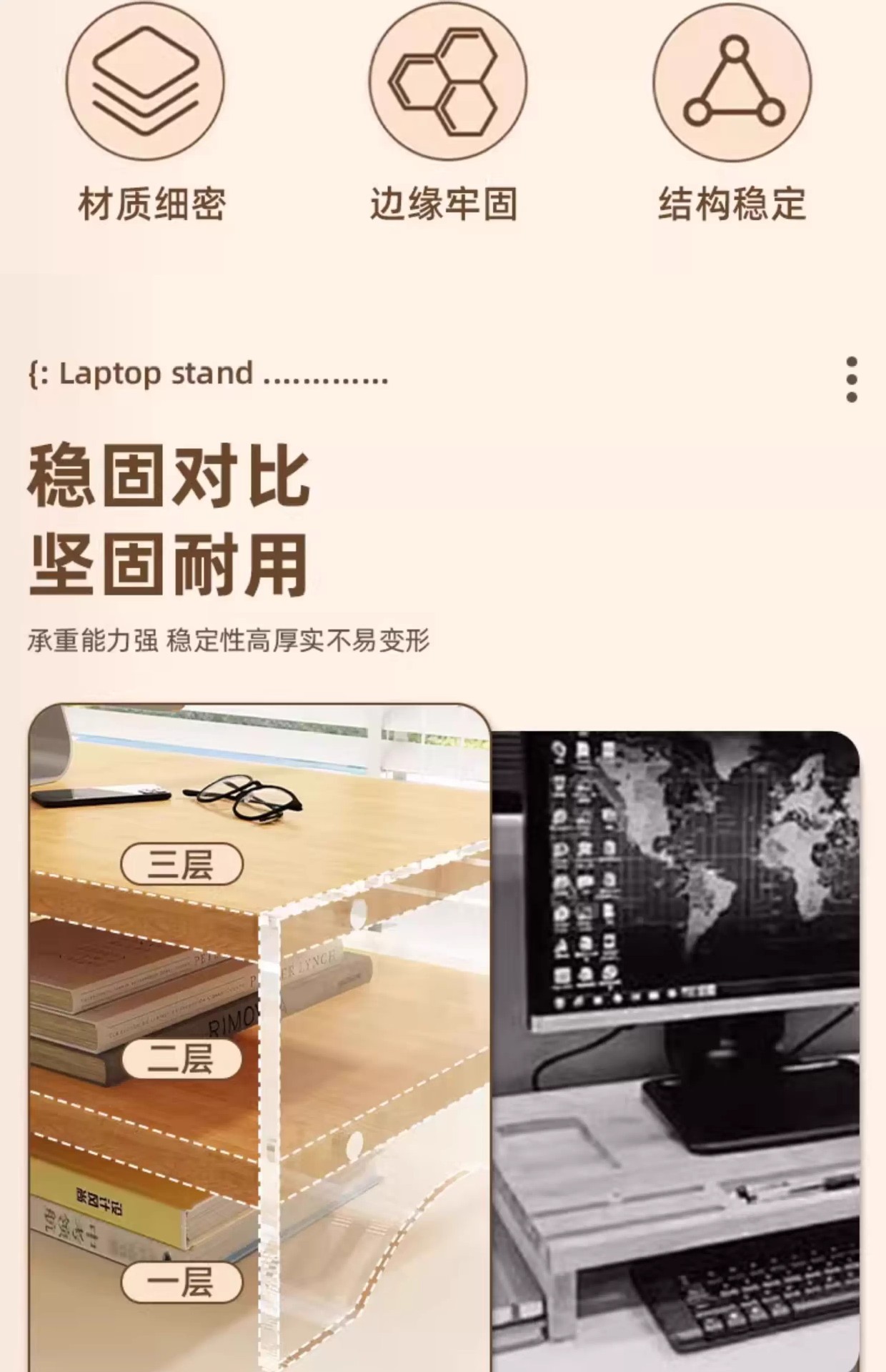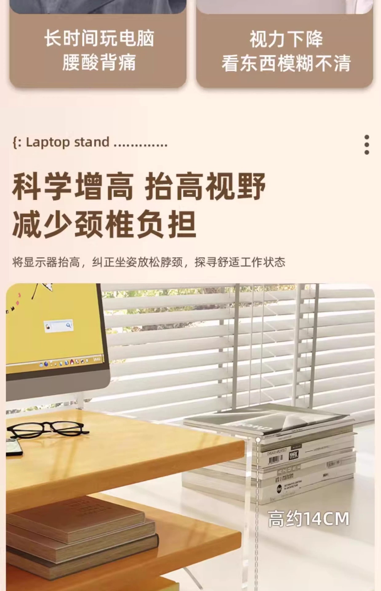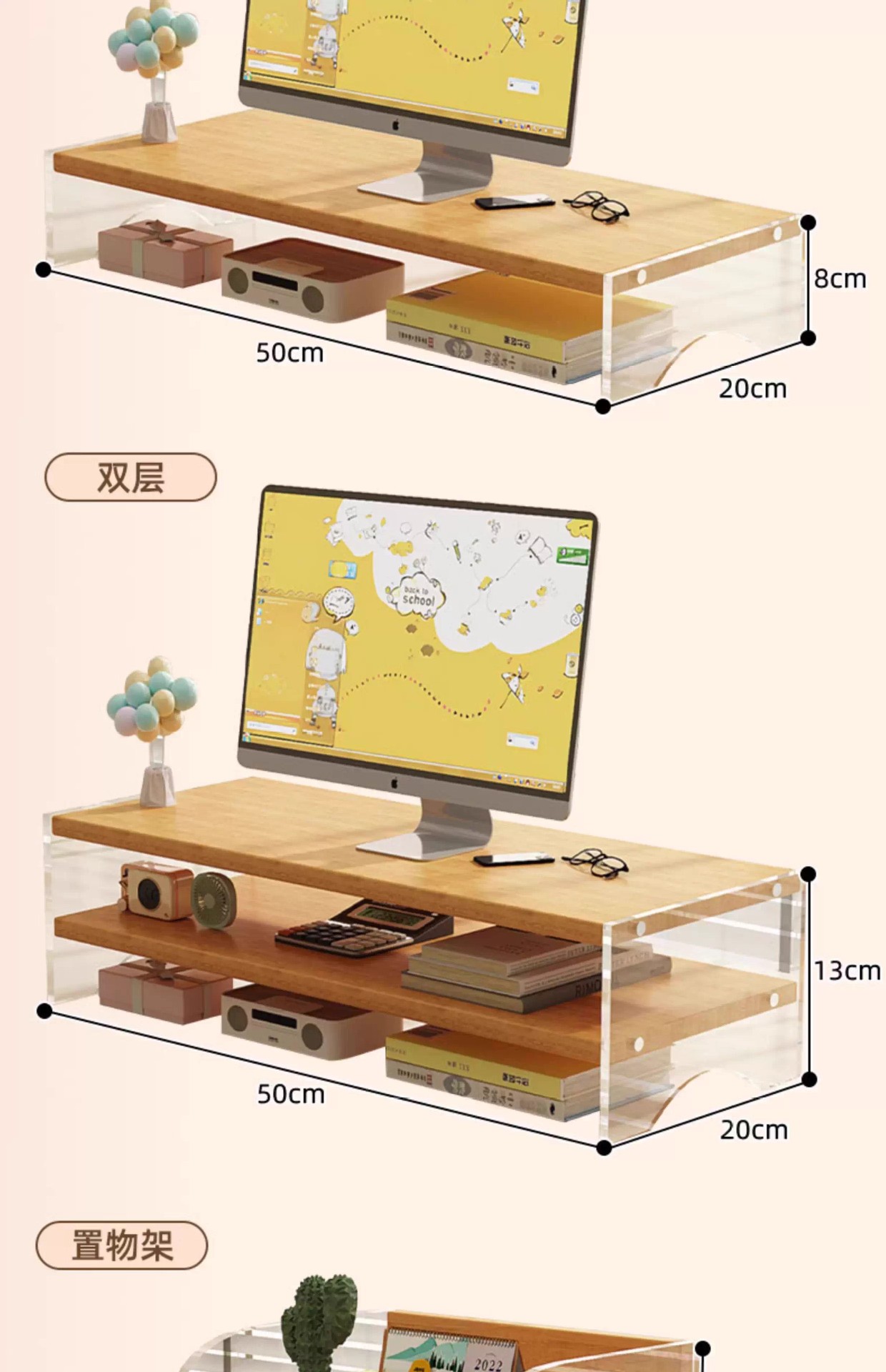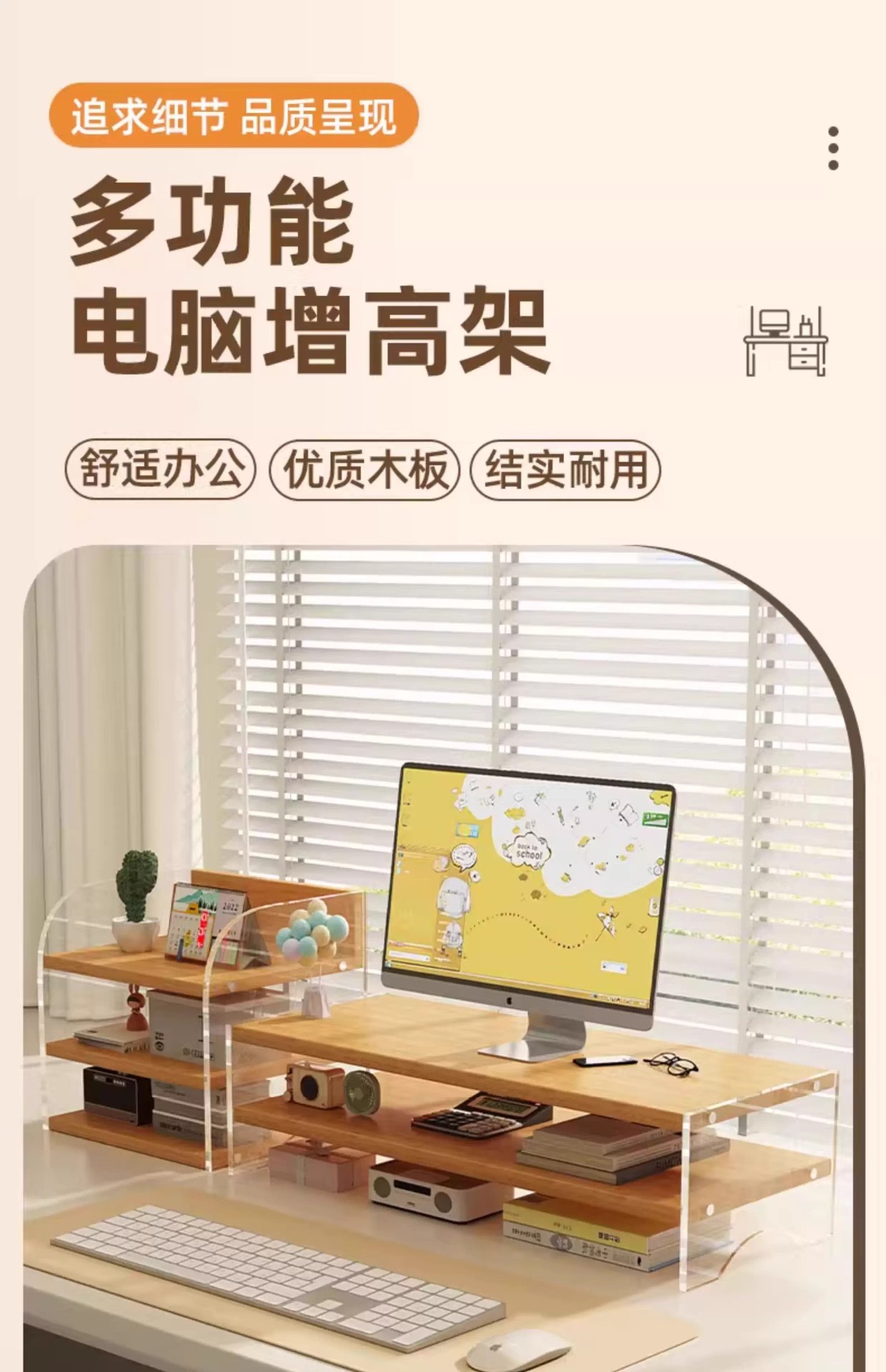 台式电脑增高架办公桌面置物架收纳显示器屏幕抬高底座亚克力支架