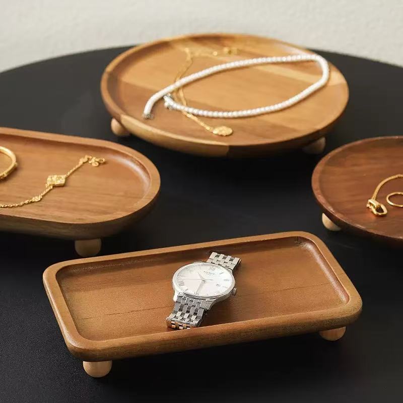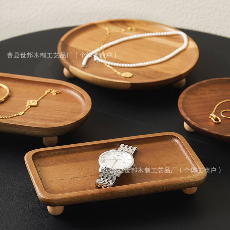 レトロなアカシア木製ジュエリートレイ香水収納ラックデスクトップアロマセラピートレイ玄関キー収納トレイ家の装飾