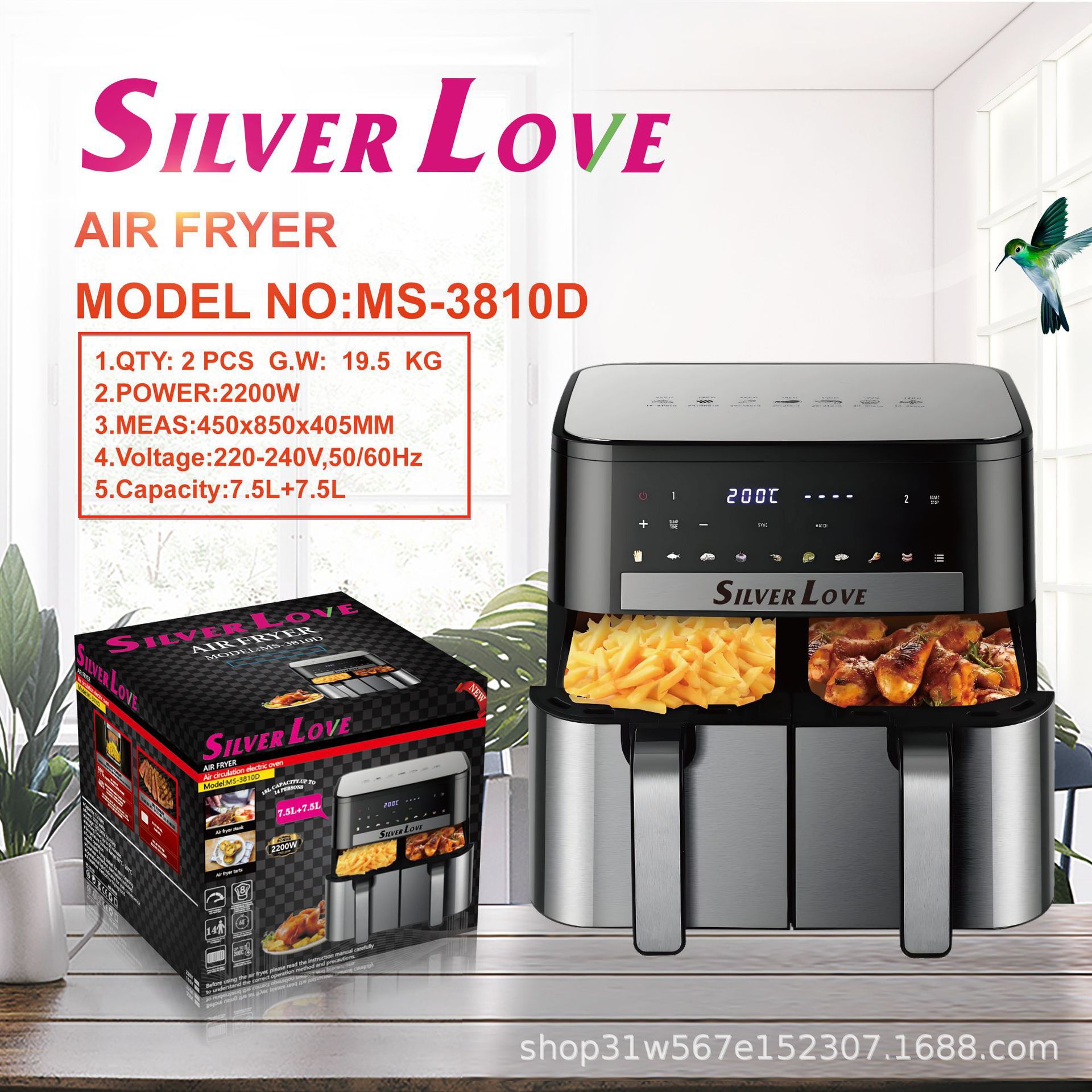 外国貿易輸出ハイパワー空気フライヤー 8L 大容量スマートホームステンレス鋼電気フライヤーダブルドア