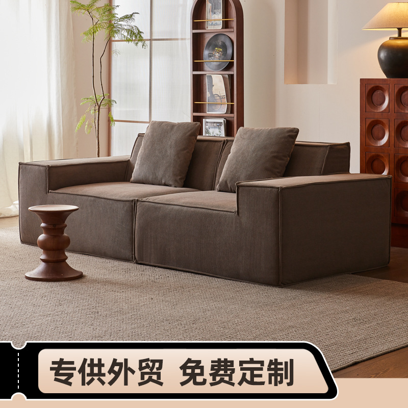 レトロ圧縮ソファ、アンティーク風コーデュロイ豆腐ブロック、リビングルーム直列圧縮ロールパック真空ピュアスポンジソファ