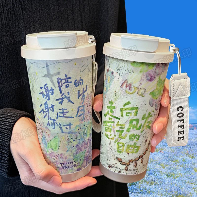TNT时代少年团保温杯大容量316不锈钢便携车载咖啡杯双饮