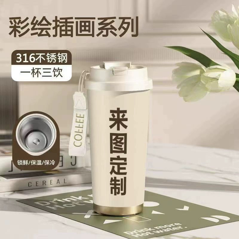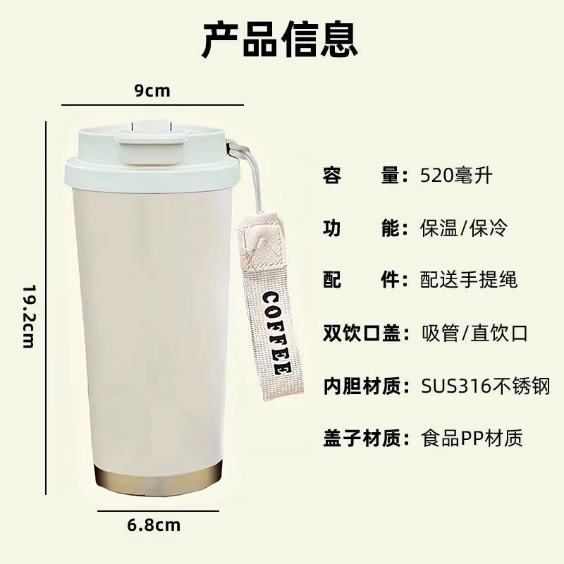 百家姓保温杯316陶瓷不锈钢大容量吸管水杯高颜值咖啡杯新款