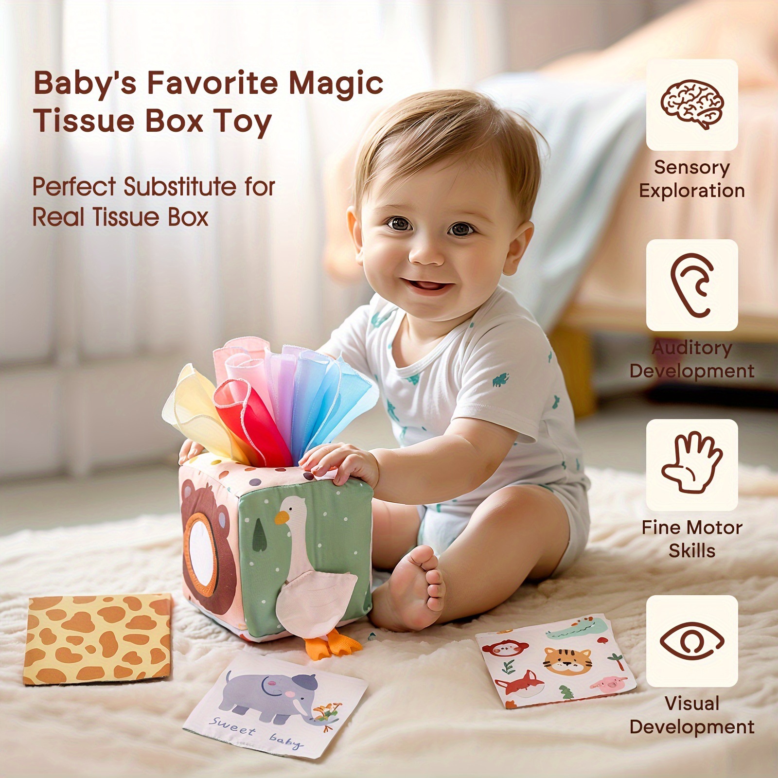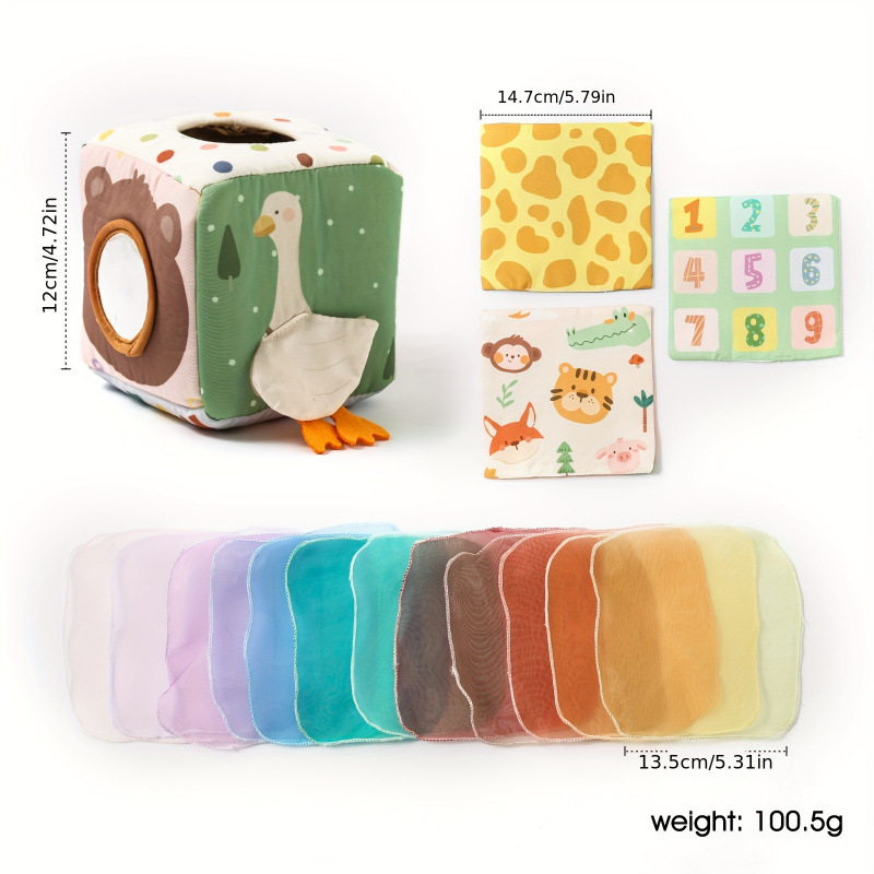 子供用破れない布製ティッシュボックス、赤ちゃん用ティッシュおもちゃ、0〜1歳の乳幼児向け早期教育布絵本