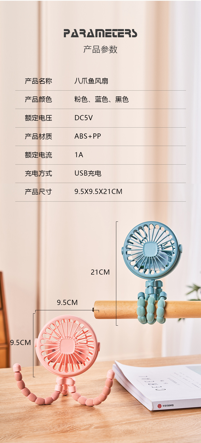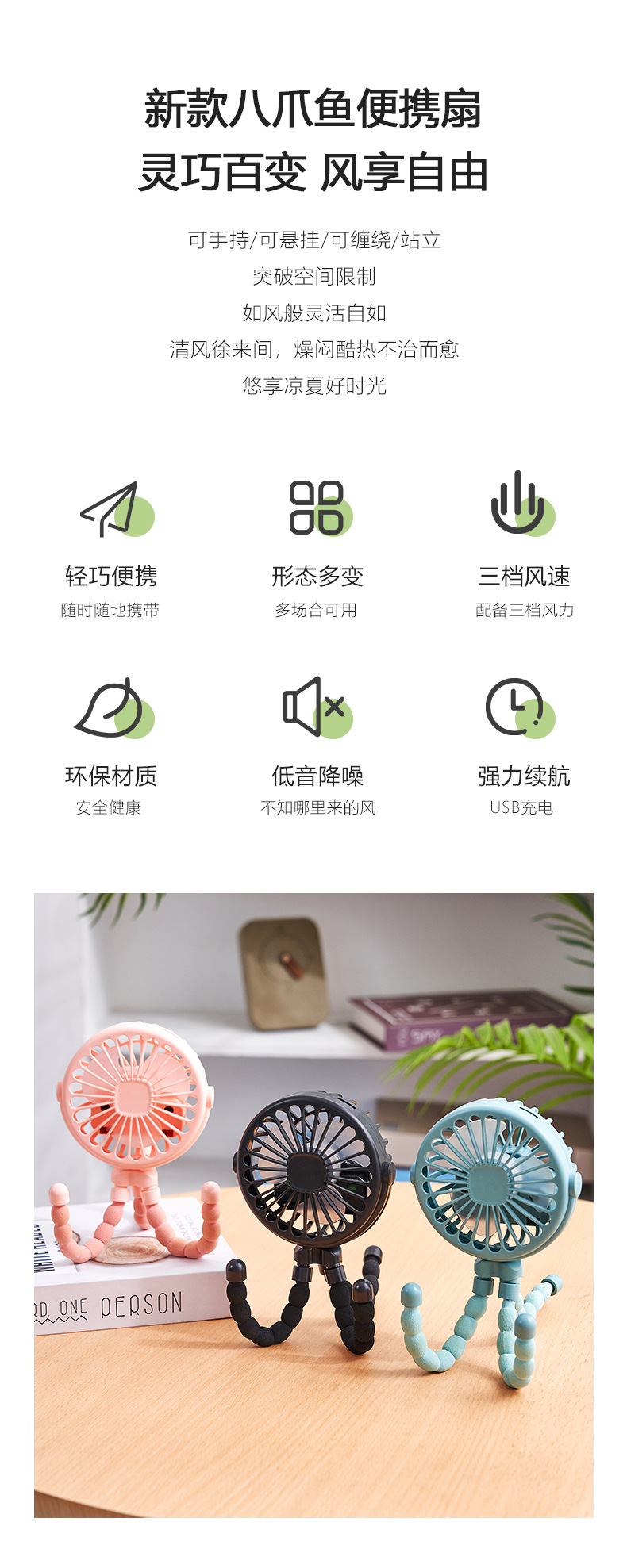 クロスボーダーオクトパスファンベビーカー寮オフィスデスク充電式ポータブルハンドヘルドミニ折りたたみ扇風機